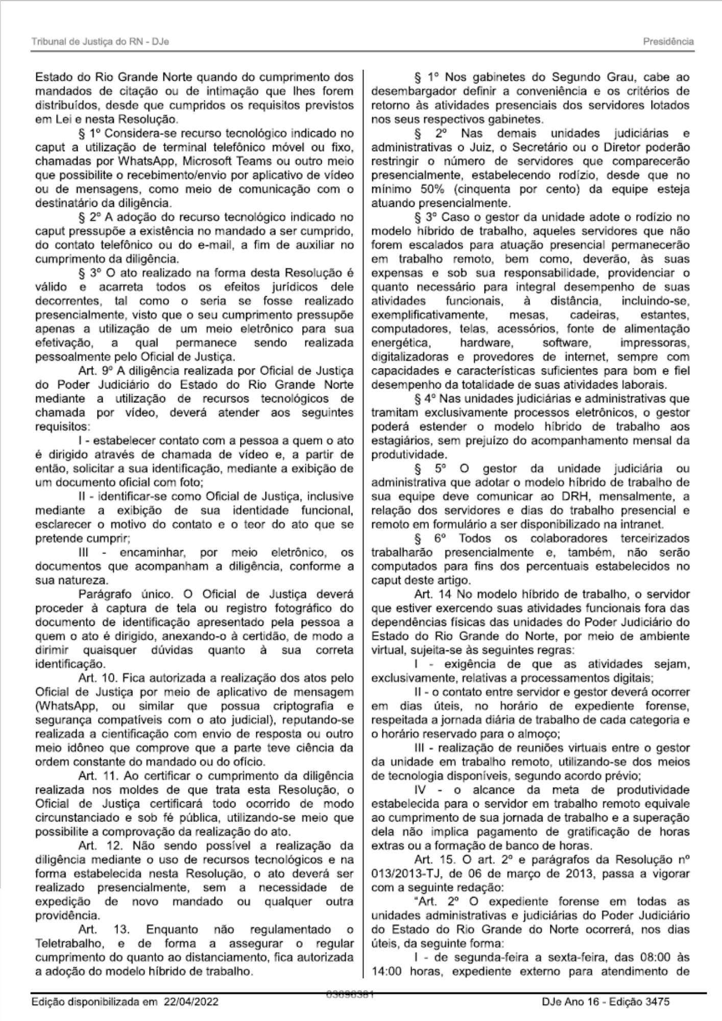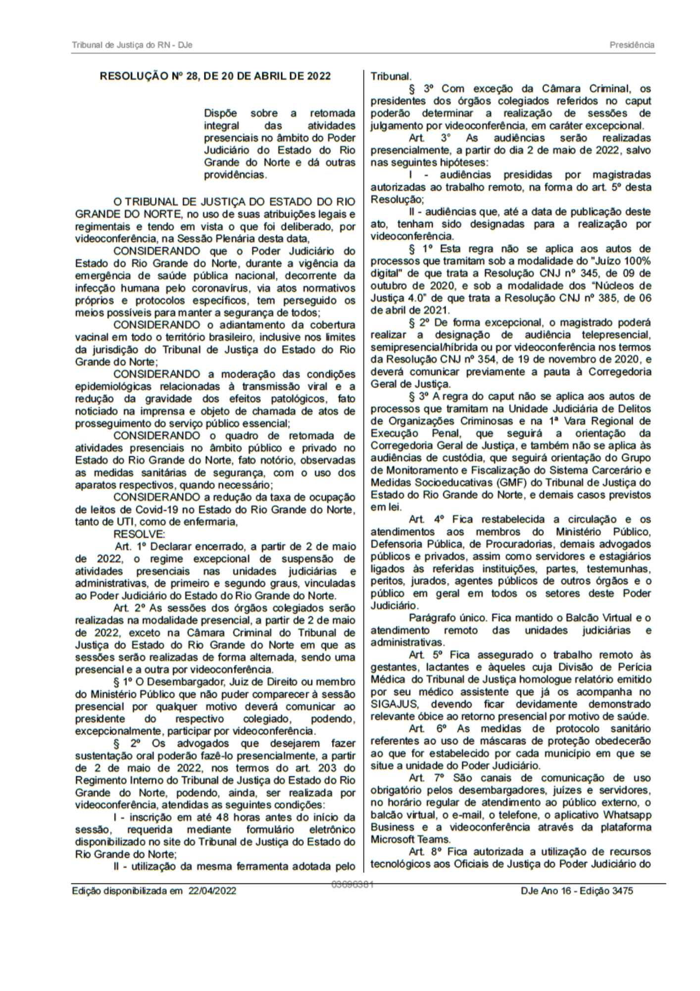 Retomada integral das atividades presenciais do TJRN