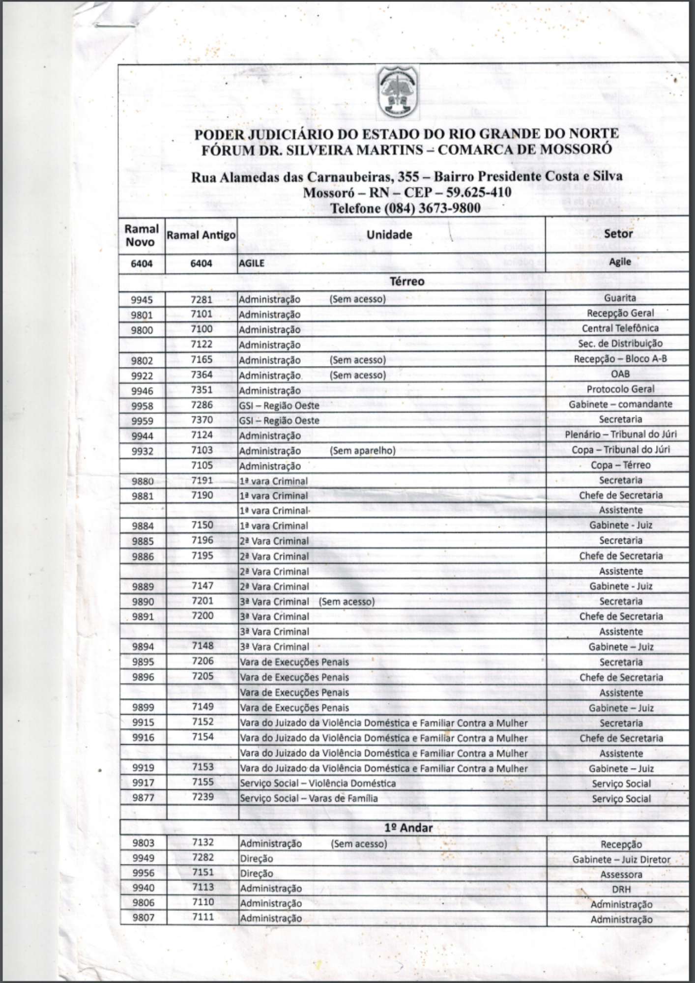 Novos ramais do TJRN em Mossoró