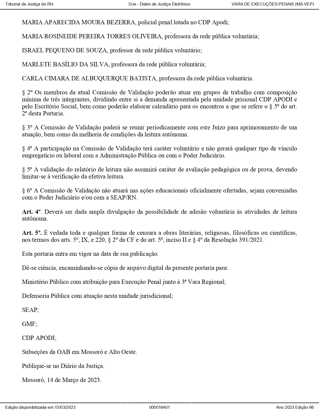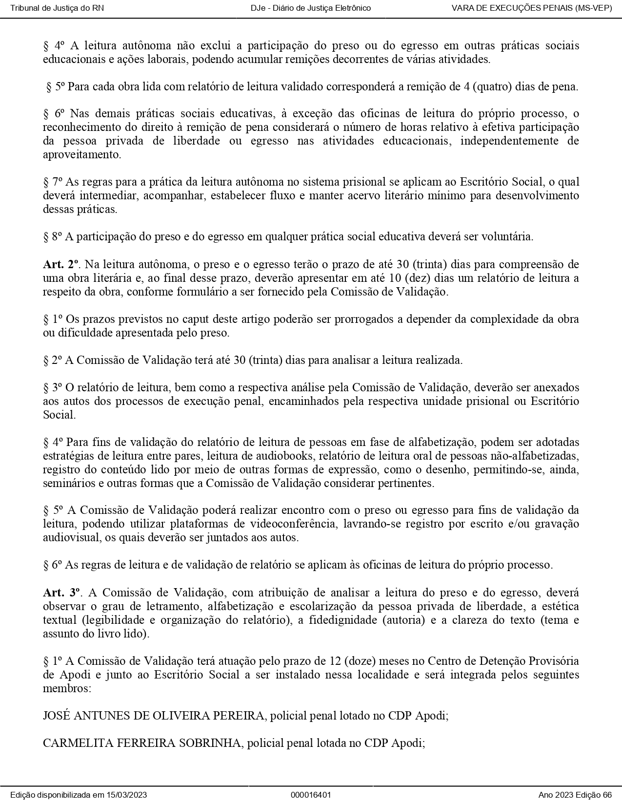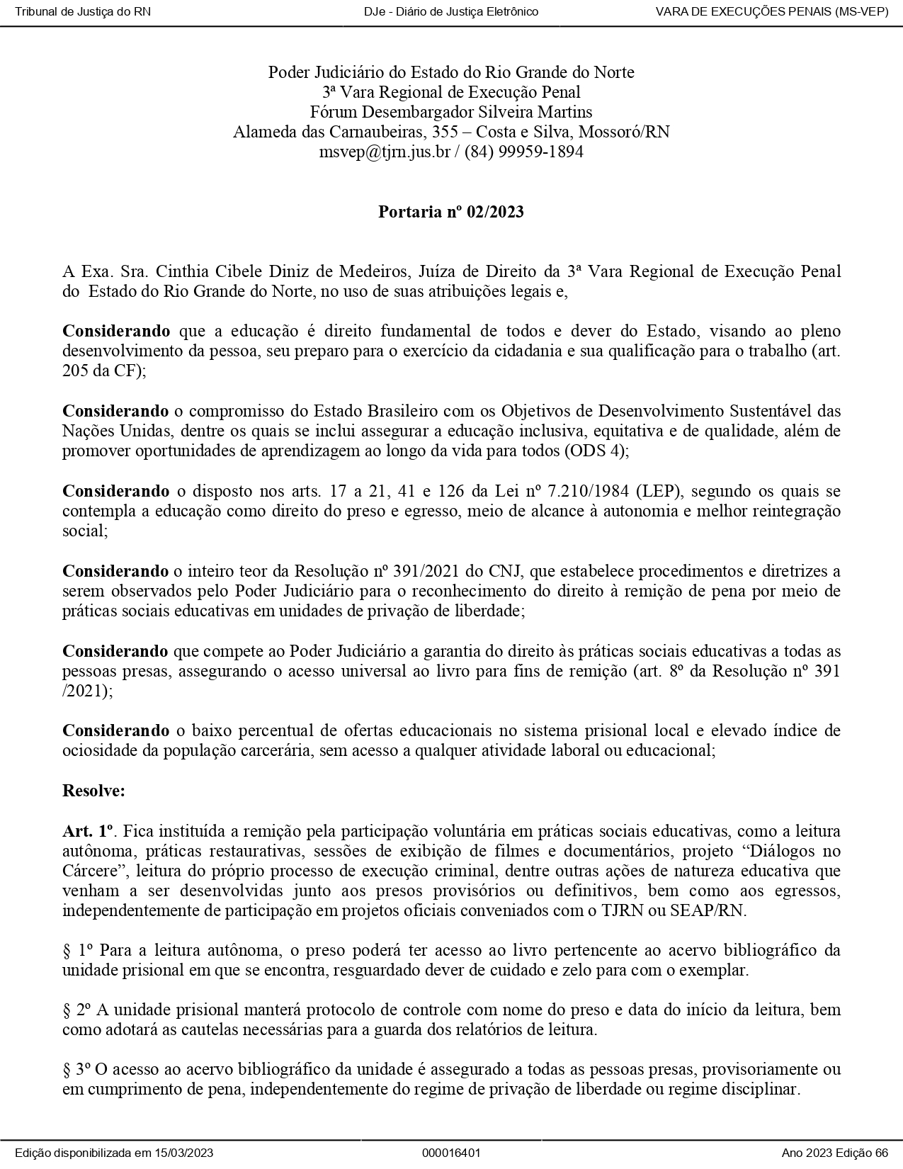 PORTARIA O2/2023 - 3ª Vara Regional de Execução Penal