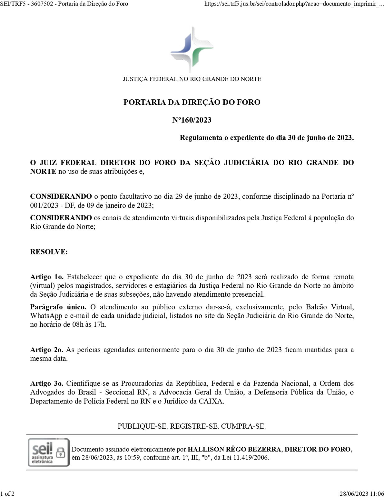 PORTARIA DA DIREÇÃO GERAL DO FORO - JUSTIÇA FEDERAL