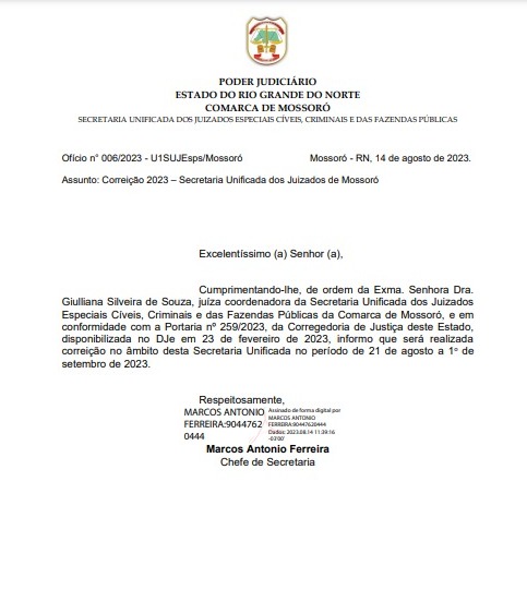 CORREIÇÃO - Secretaria Unificada dos Juizados de Mossoró