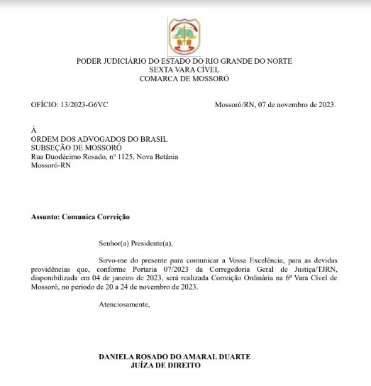 CORREIÇÃO ORDINÁRIA 6 VARA CIVEL/MOSSORÓ - 20 a 24/11