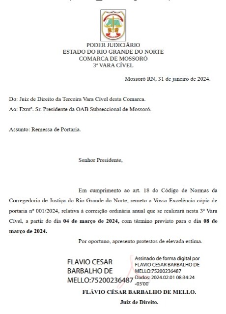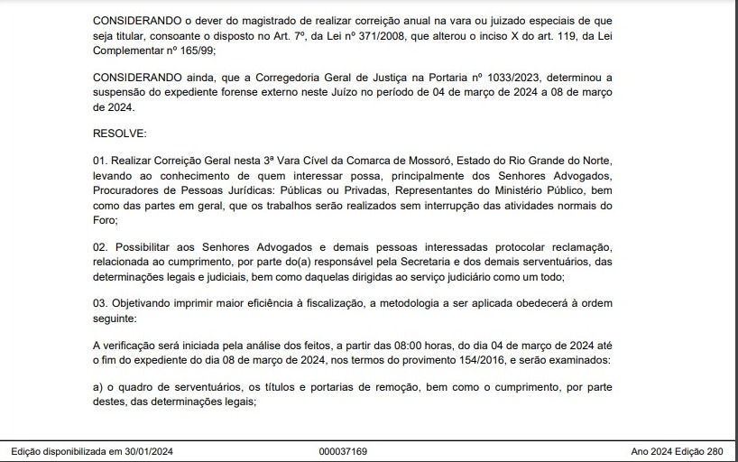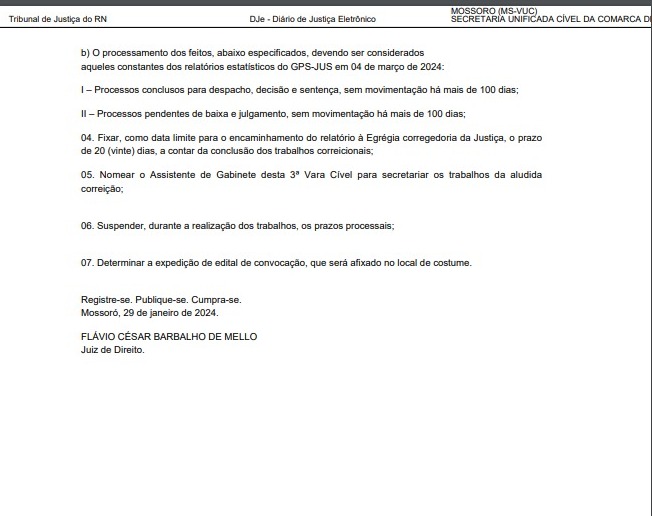 CORREIÇÃO - 3 VARA CÍVEL MOSSORÓ - 03 E 04 DE MARÇO DE 2024