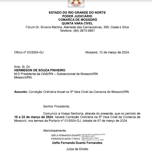 Correição Ordinária na 5ª Vara Cível de Mossoró