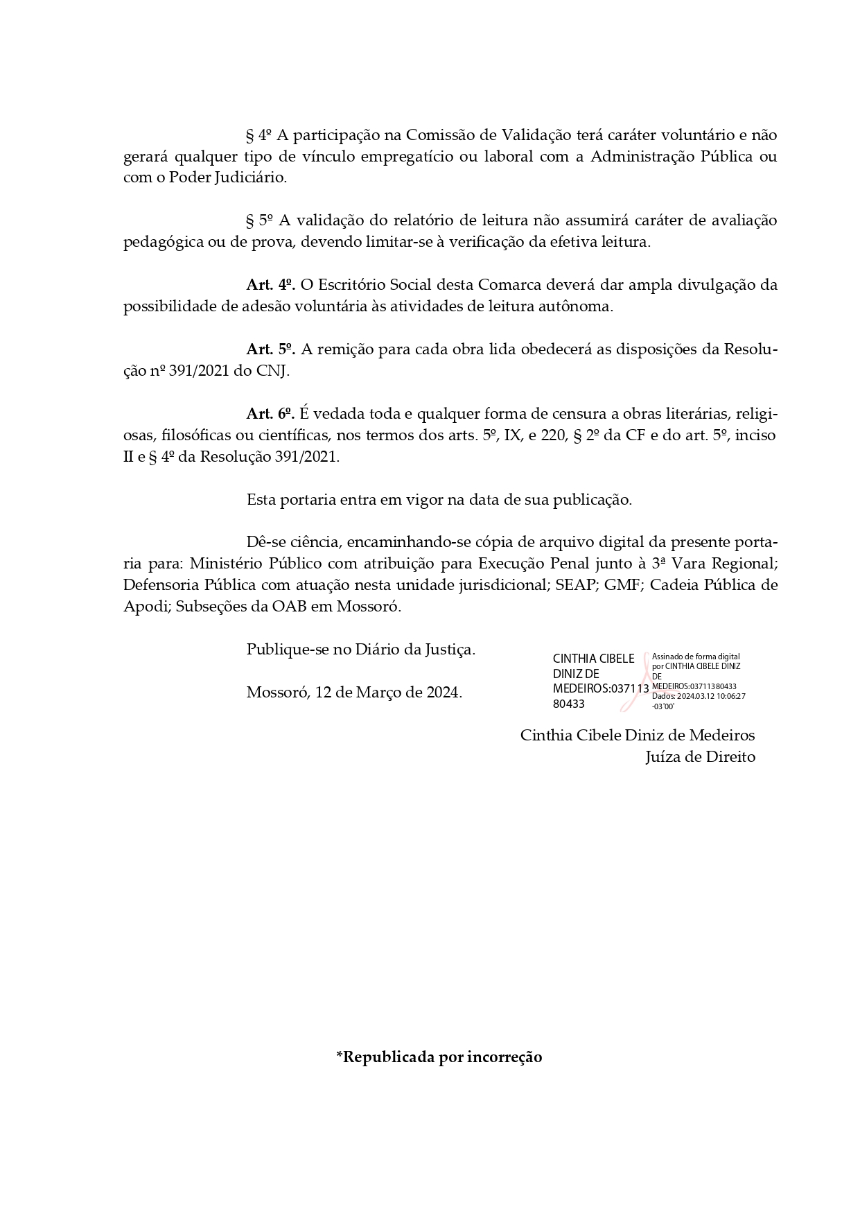 Portaria COMISSÃO DE VALIDAÇÃO 2024 - ESCRITÓRIO SOCIAL MOSSORÓ