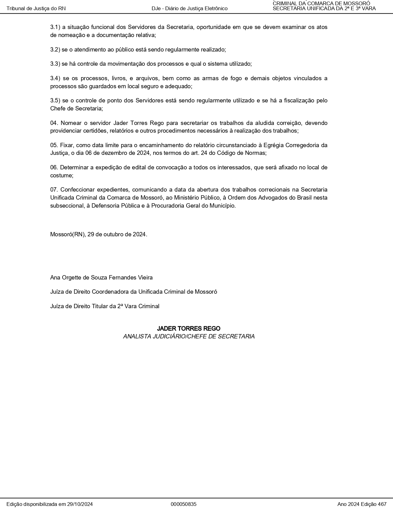 Correição Secretaria Unifcada Criminal - 25 a 29/11