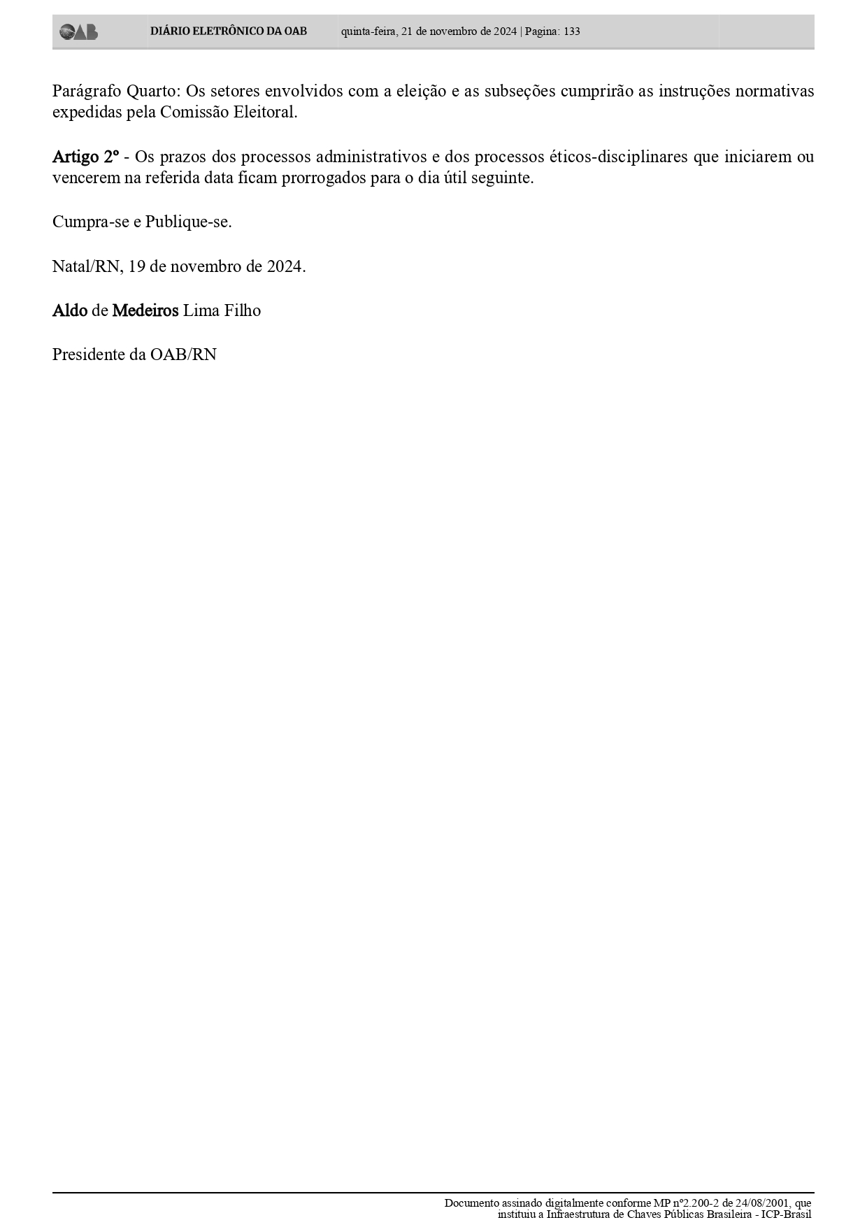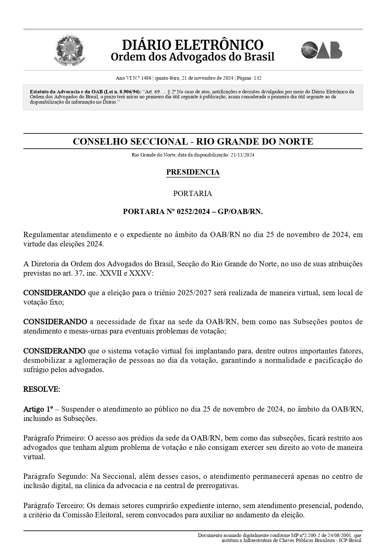 PORTARIA Nº 0252/2024 – GP/OAB/RN