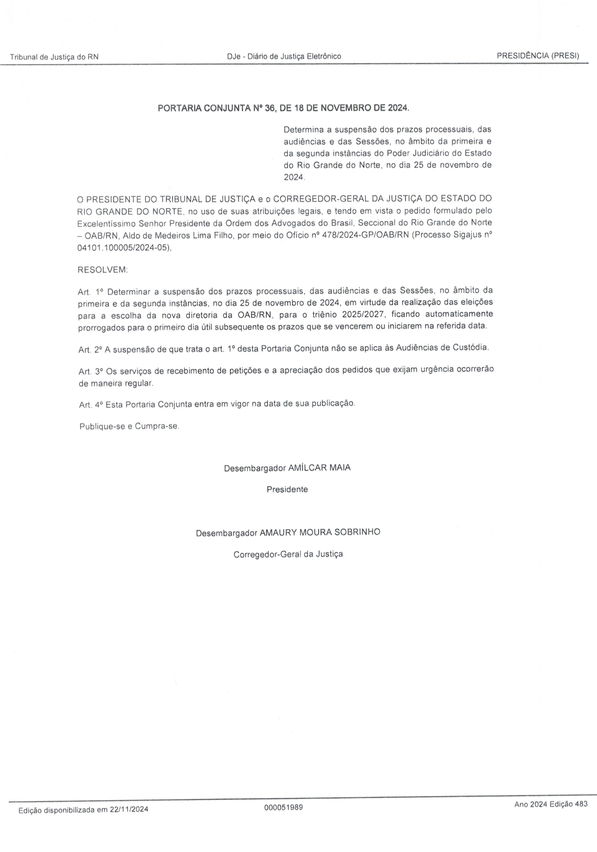 Portaria - Suspensão dos prazos processuais em virtude das eleições