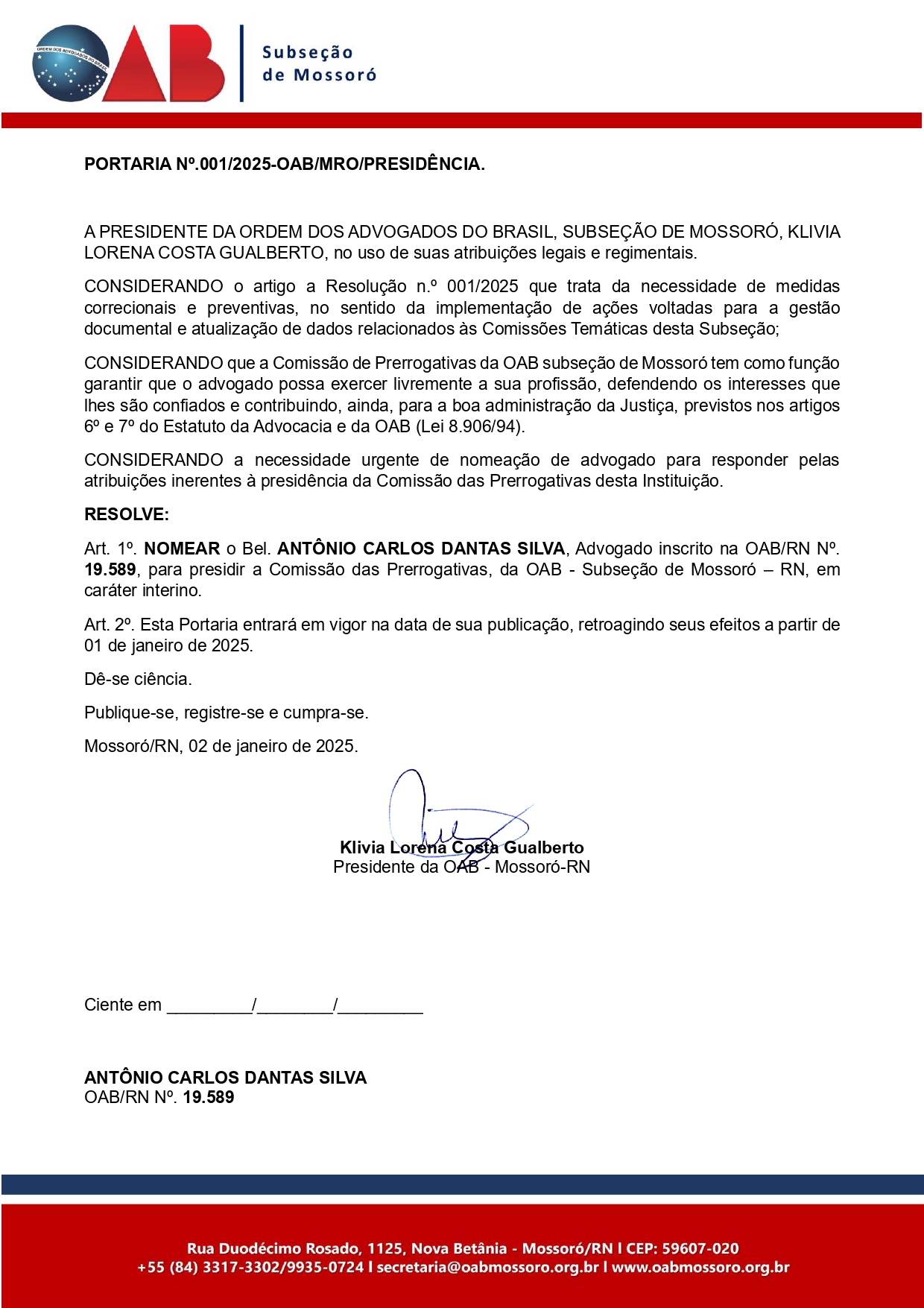 Portaria nº 001/2025 - Comissão de Prerrogativas