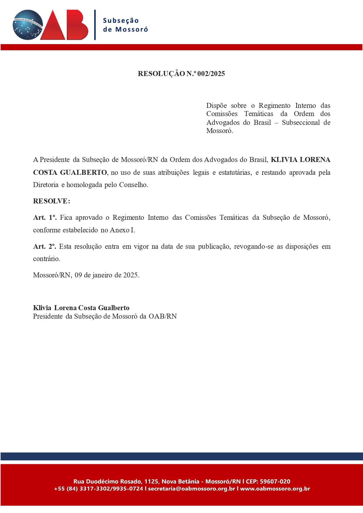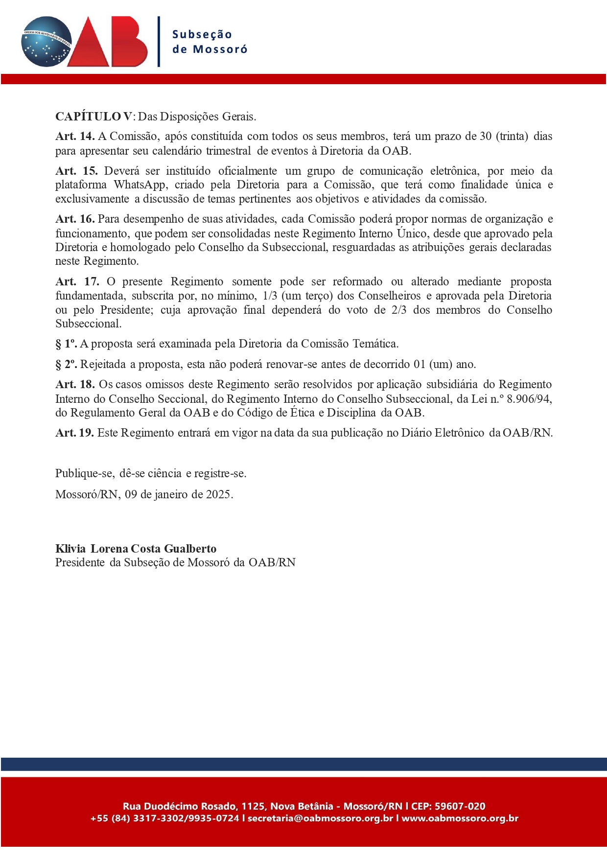 Presidência - OAB Mossoró | 14/01/2025
