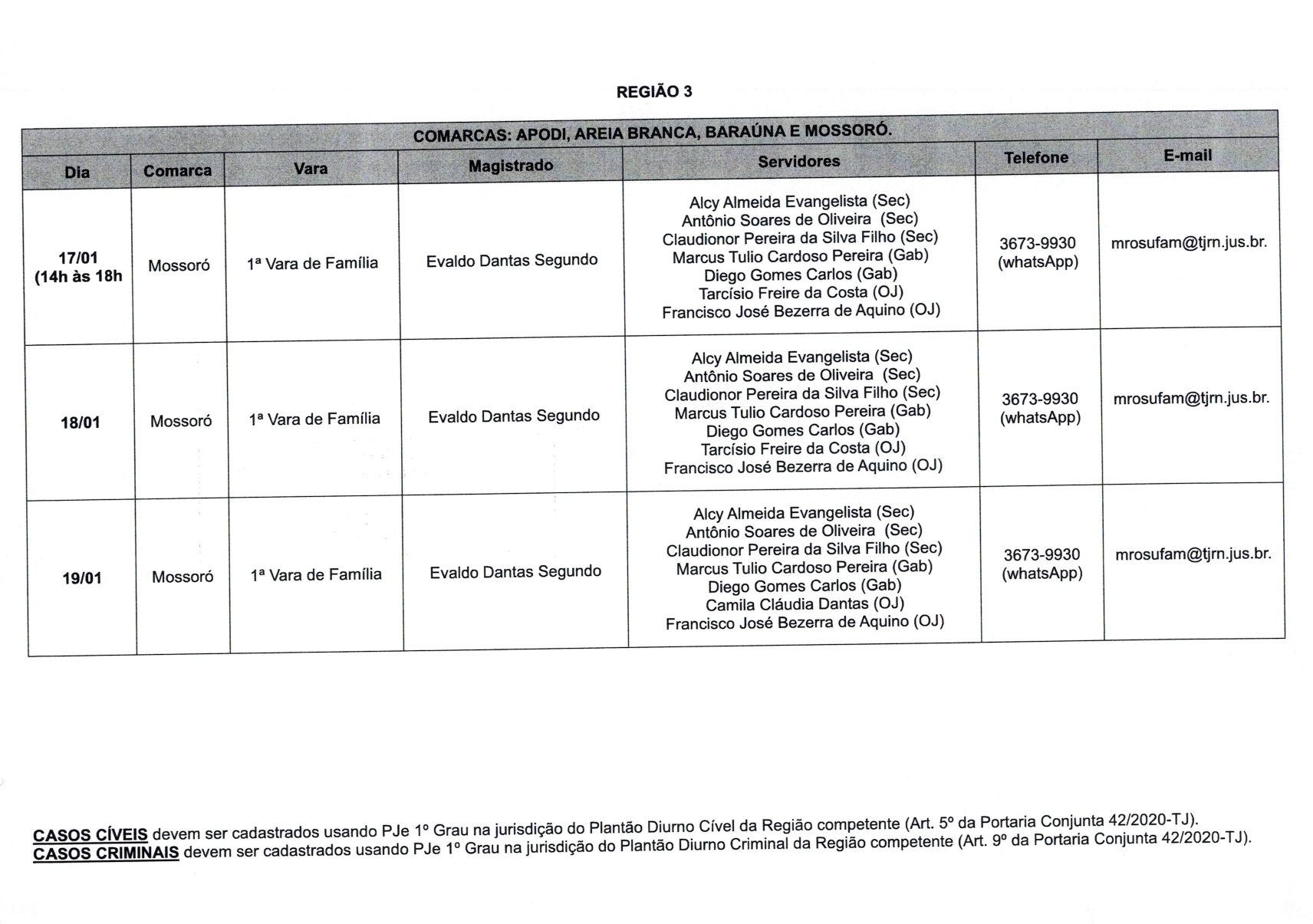PLANTÃO JUDICIÁRIO TJRN - 17/01 a 19/01/2025