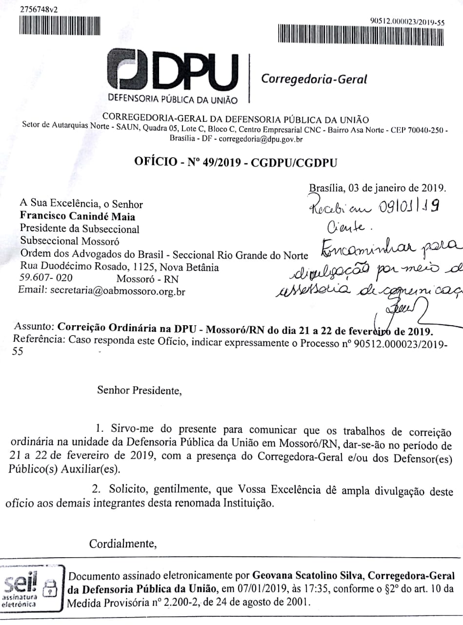 COMUNICADO - Correição Ordinária na DPU - Mossoró