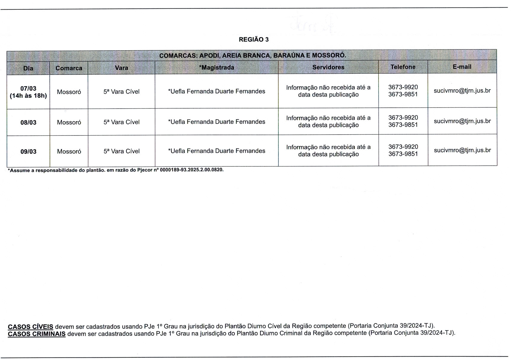 Plantão Judiciário 07 a 09 de Março