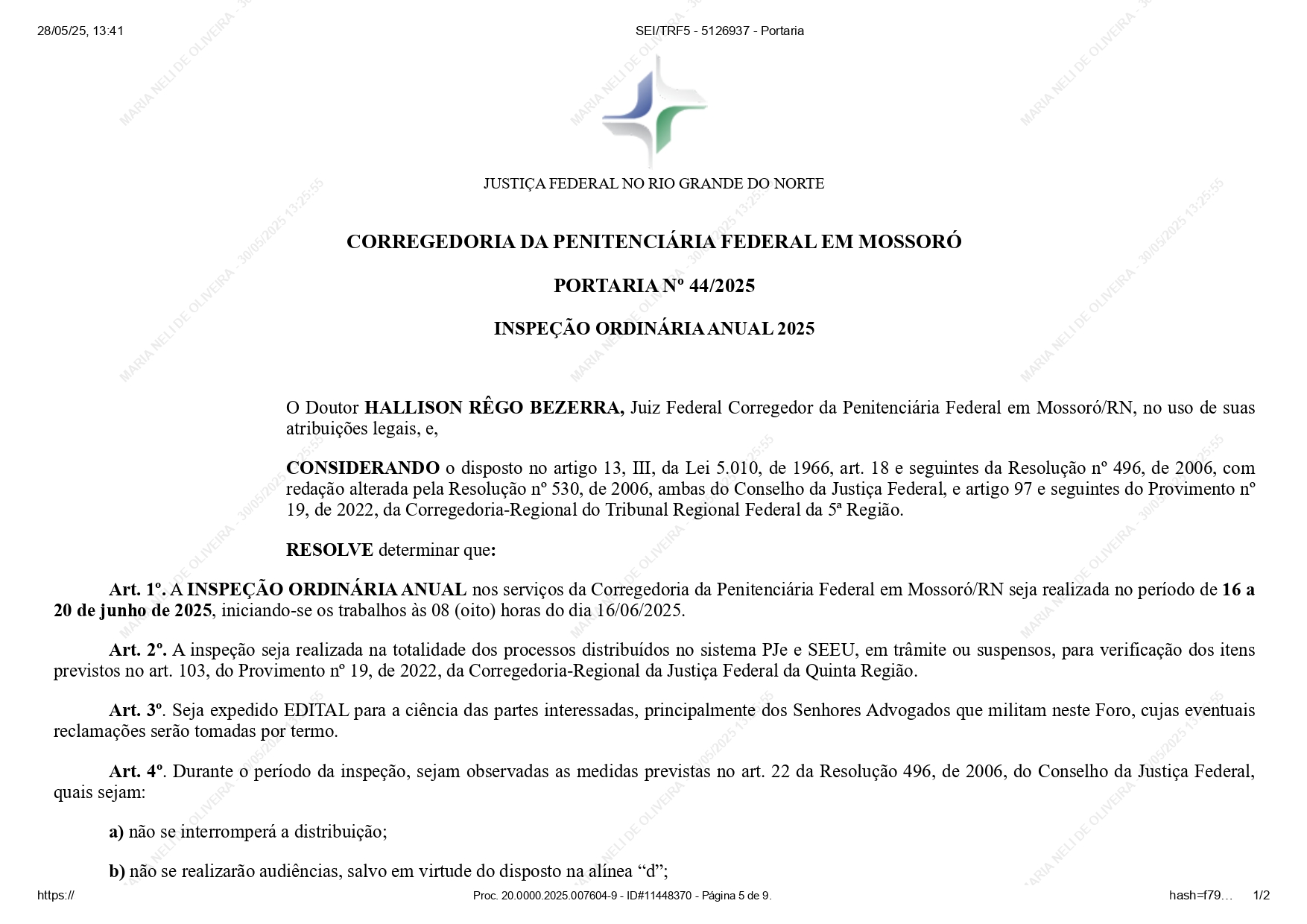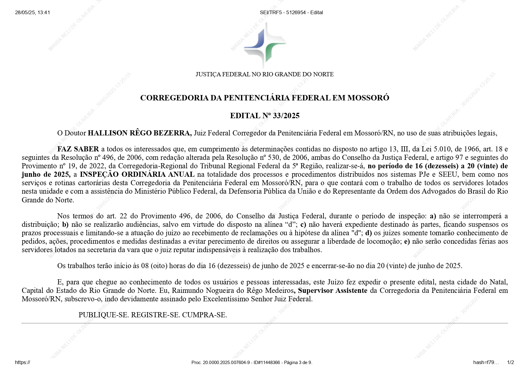 Inspeção Ordinária Anual da Corregedoria da Penitenciária Federal em Mossoró