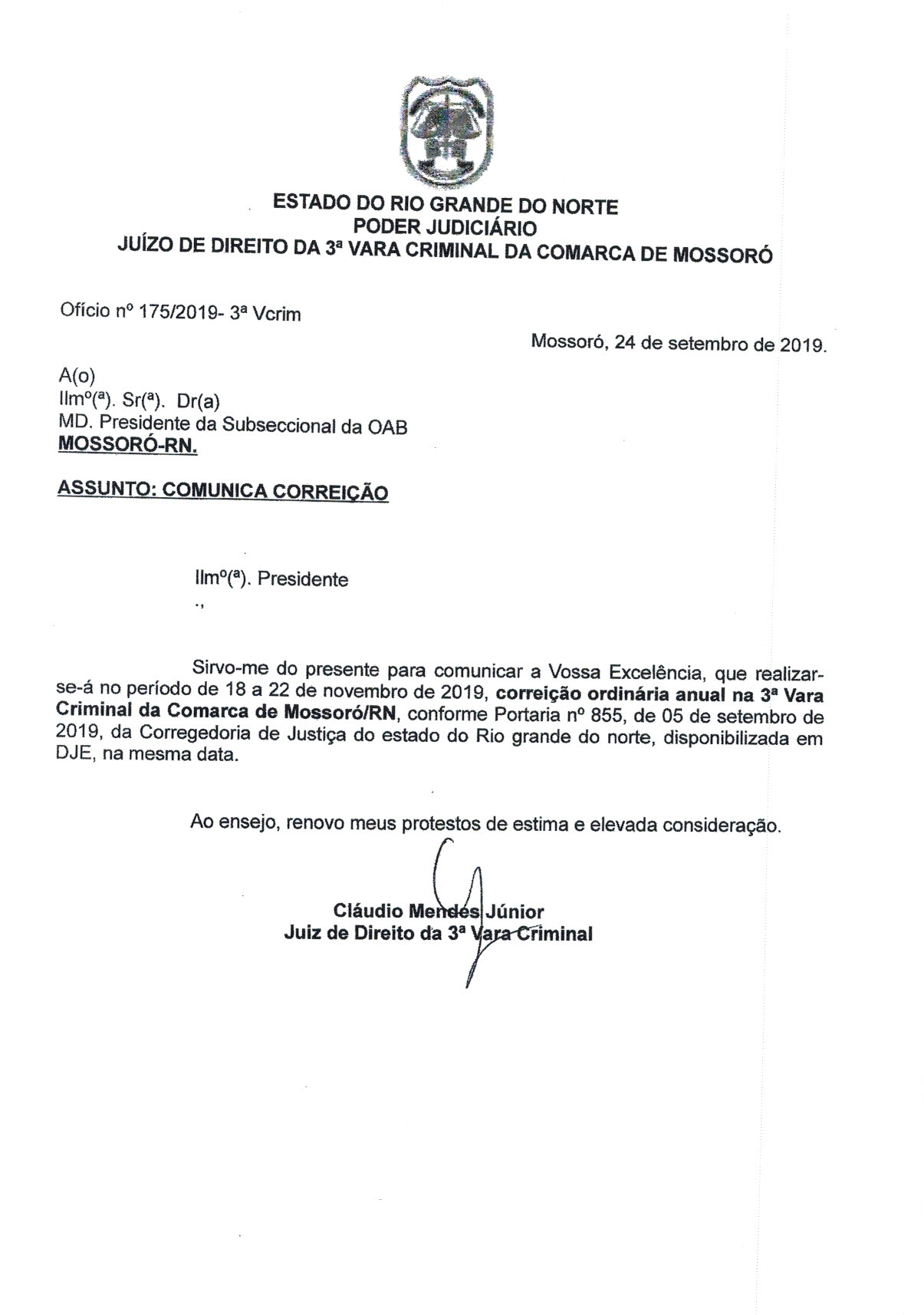 CORREIÇÃO ORDINÁRIA 3ª VARA CRIMINAL MOSSORÓ
