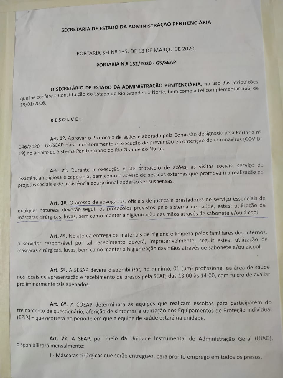 PORTARIA DA SECRETARIA DE ESTADO DA ADM PENITENCIÁRIA