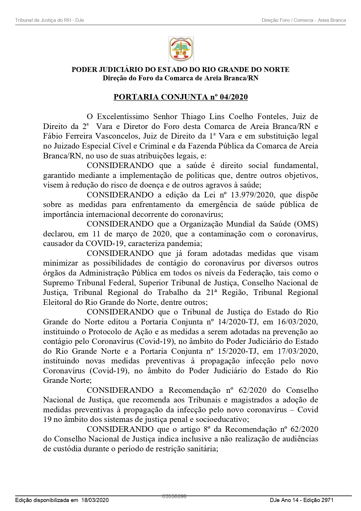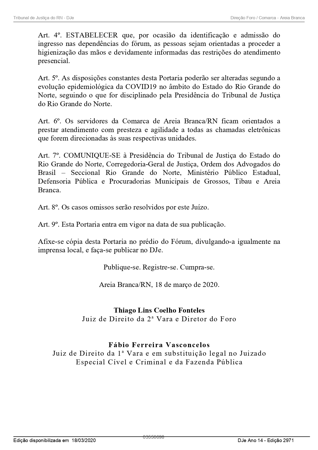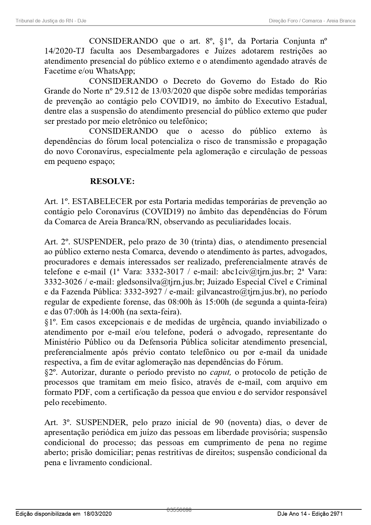 PORTARIA - FORO DA COMARCA DE AREIA BRANCA