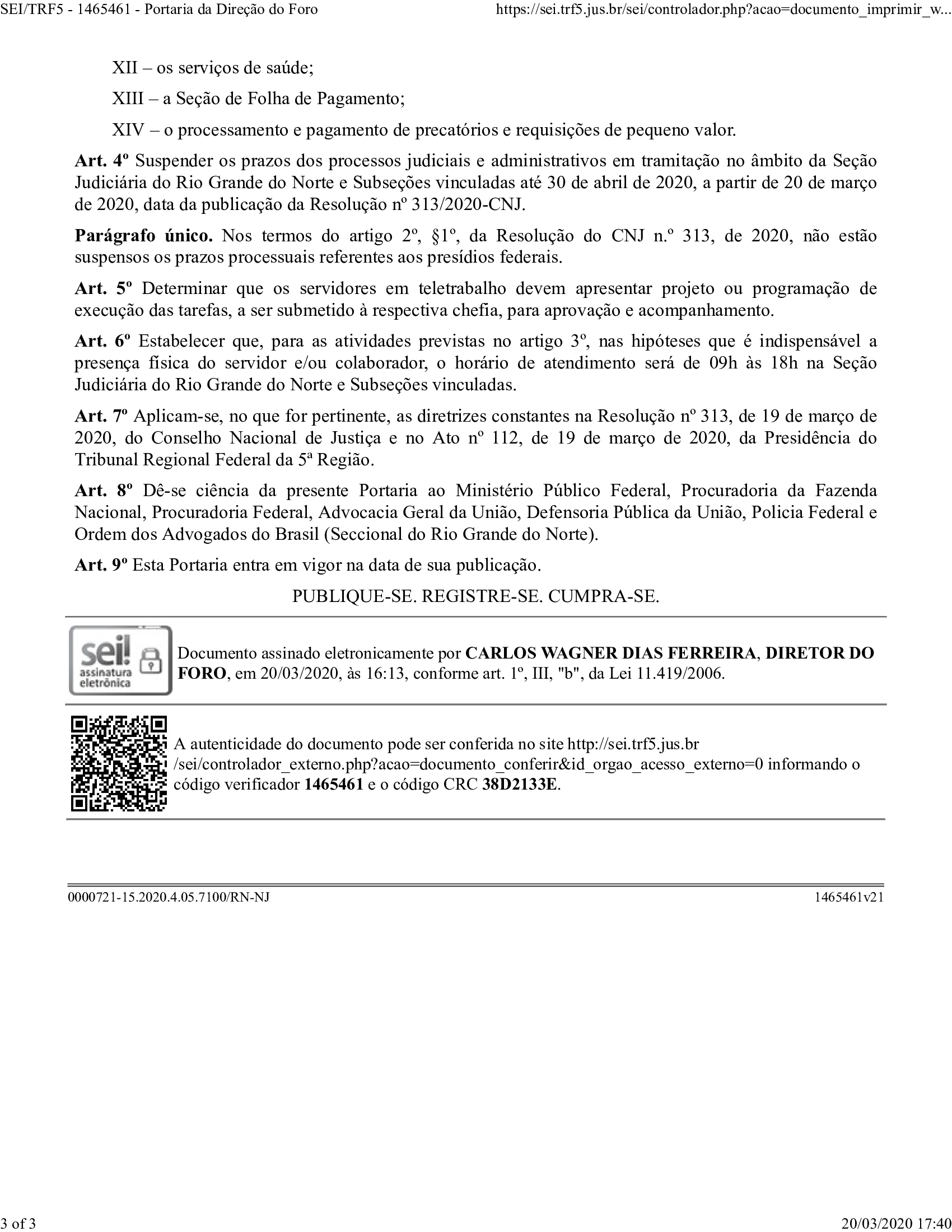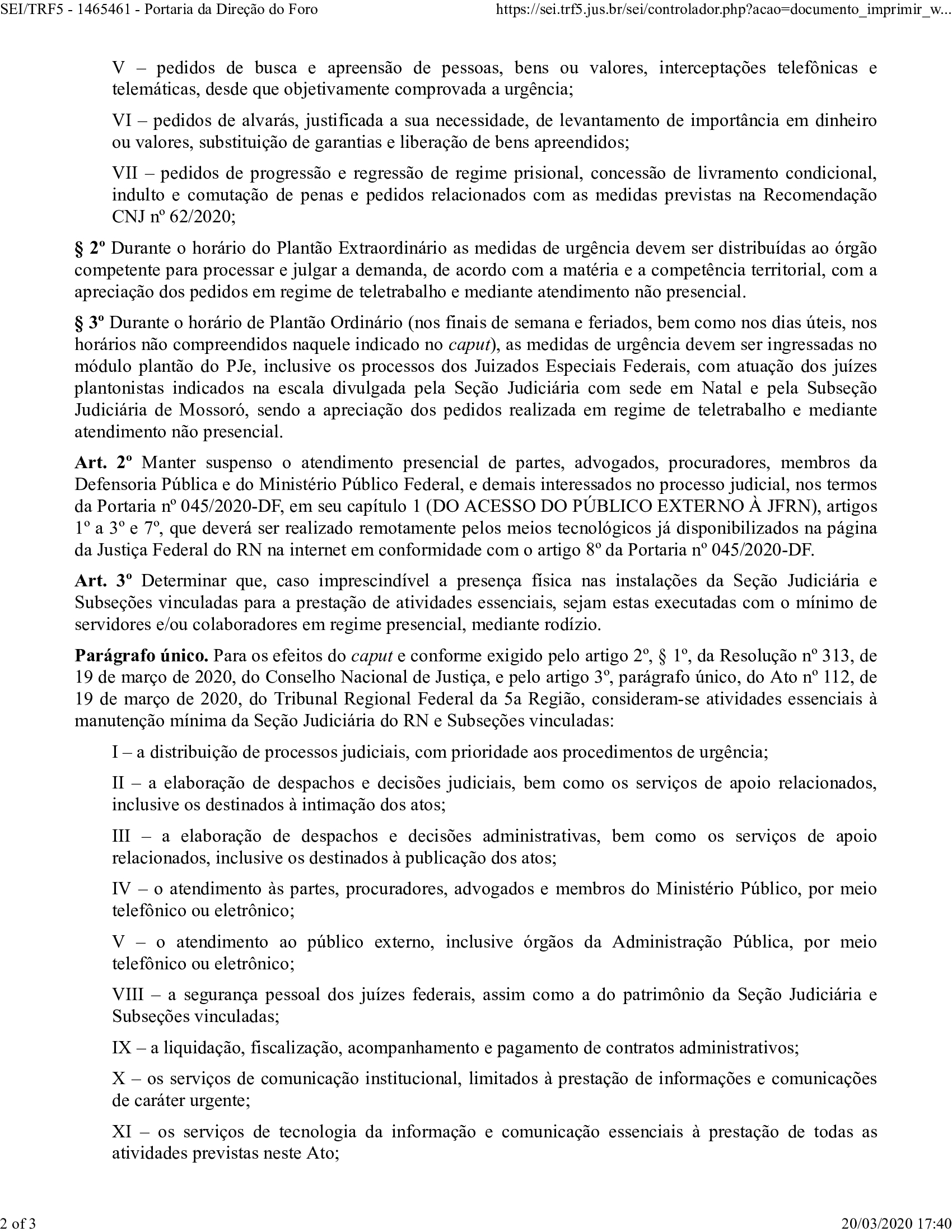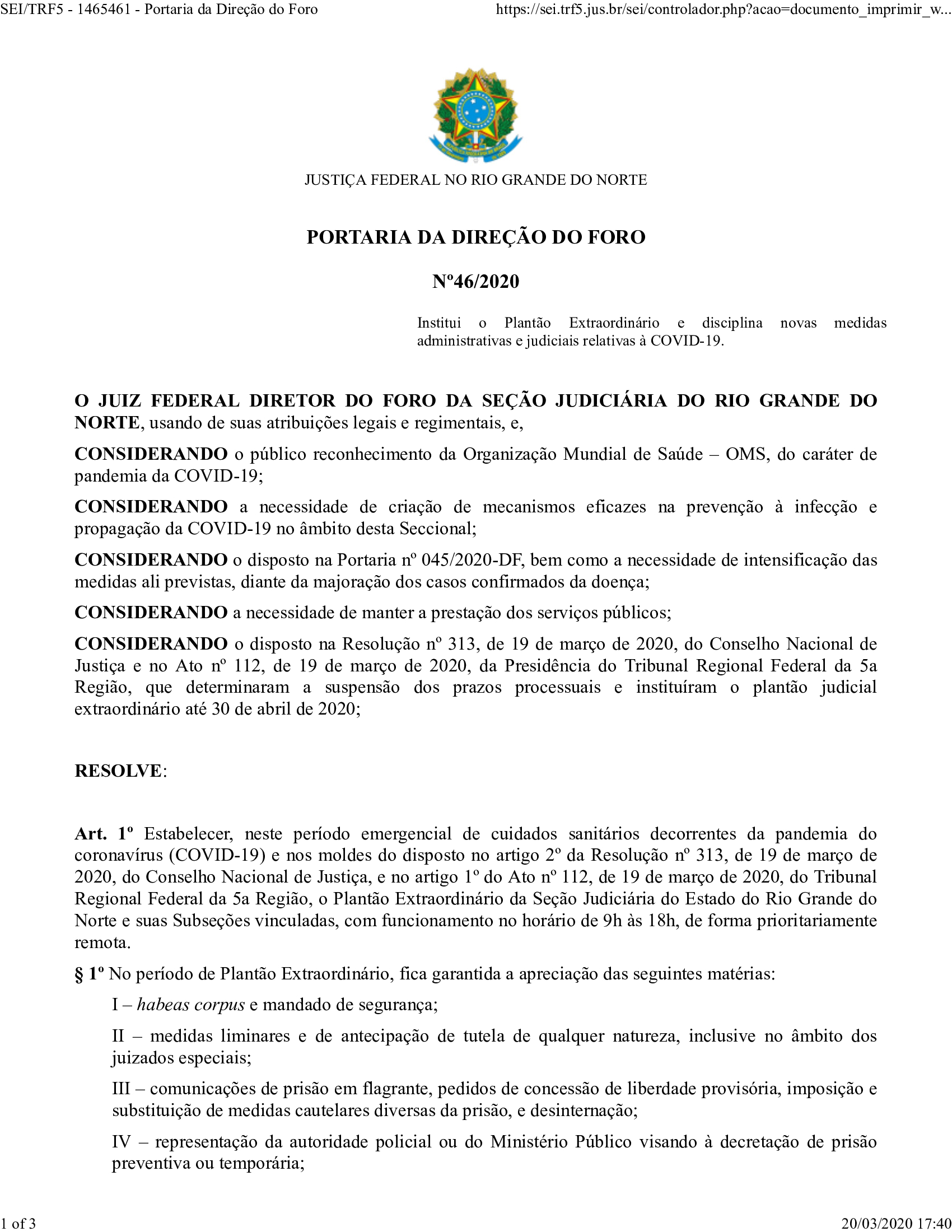 PORTARIA DA DIREÇÃO DO FORO 46/20