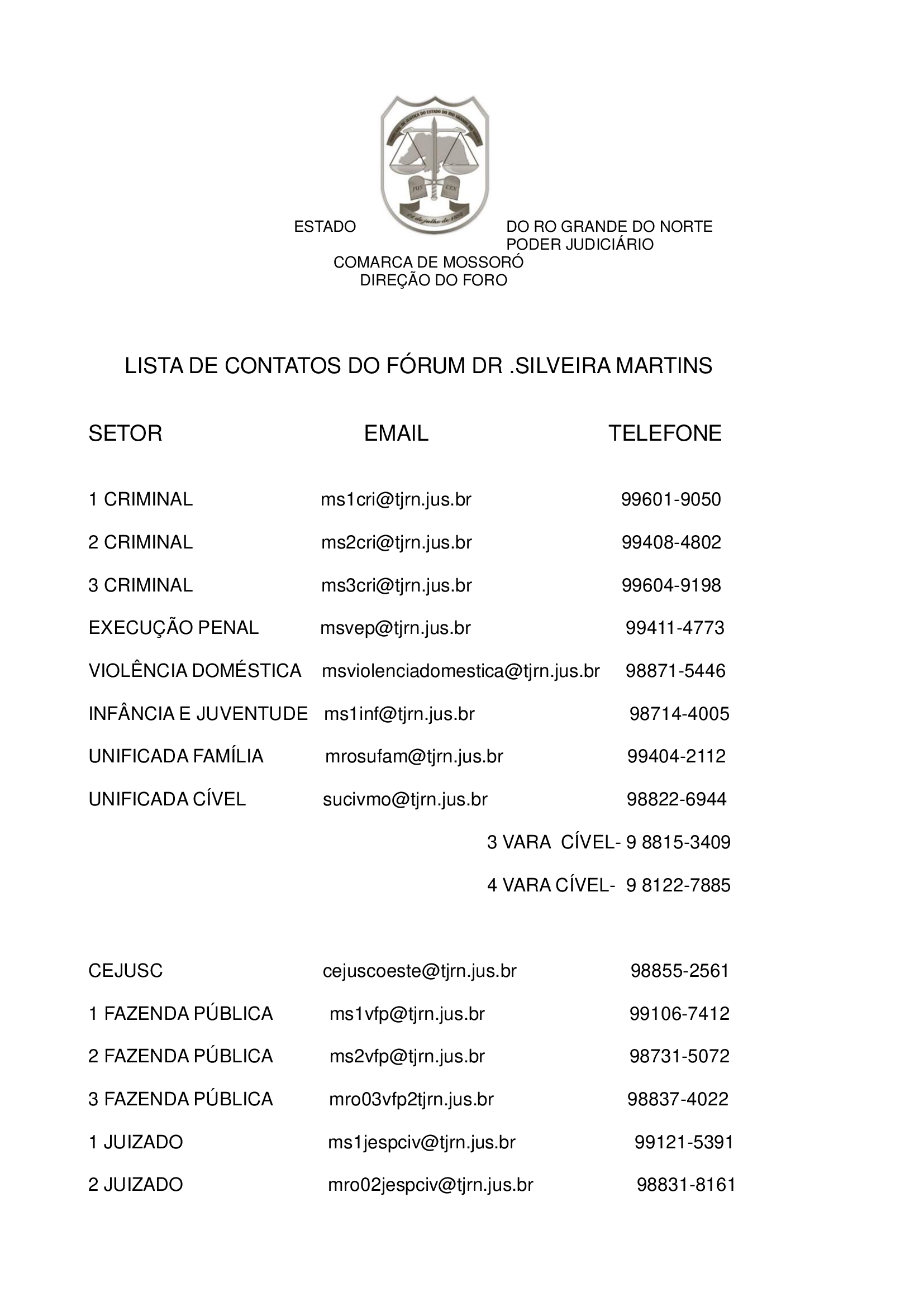 LISTA DE CONTATOS DO FÓRUM DR SILVEIRA MARTINS