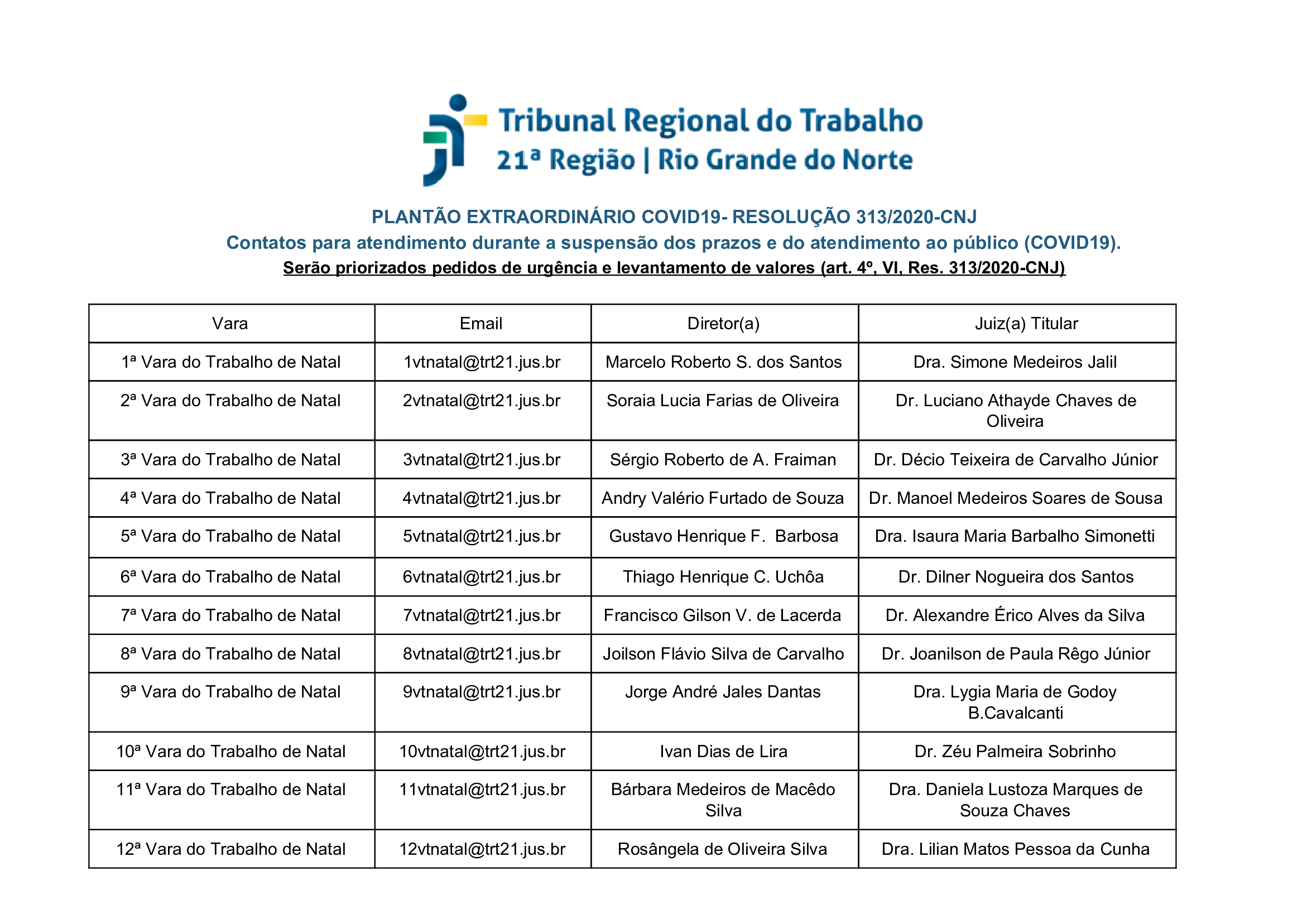ATENDIMENTO DE PLANTÃO NO TRT 21 REGIÃO