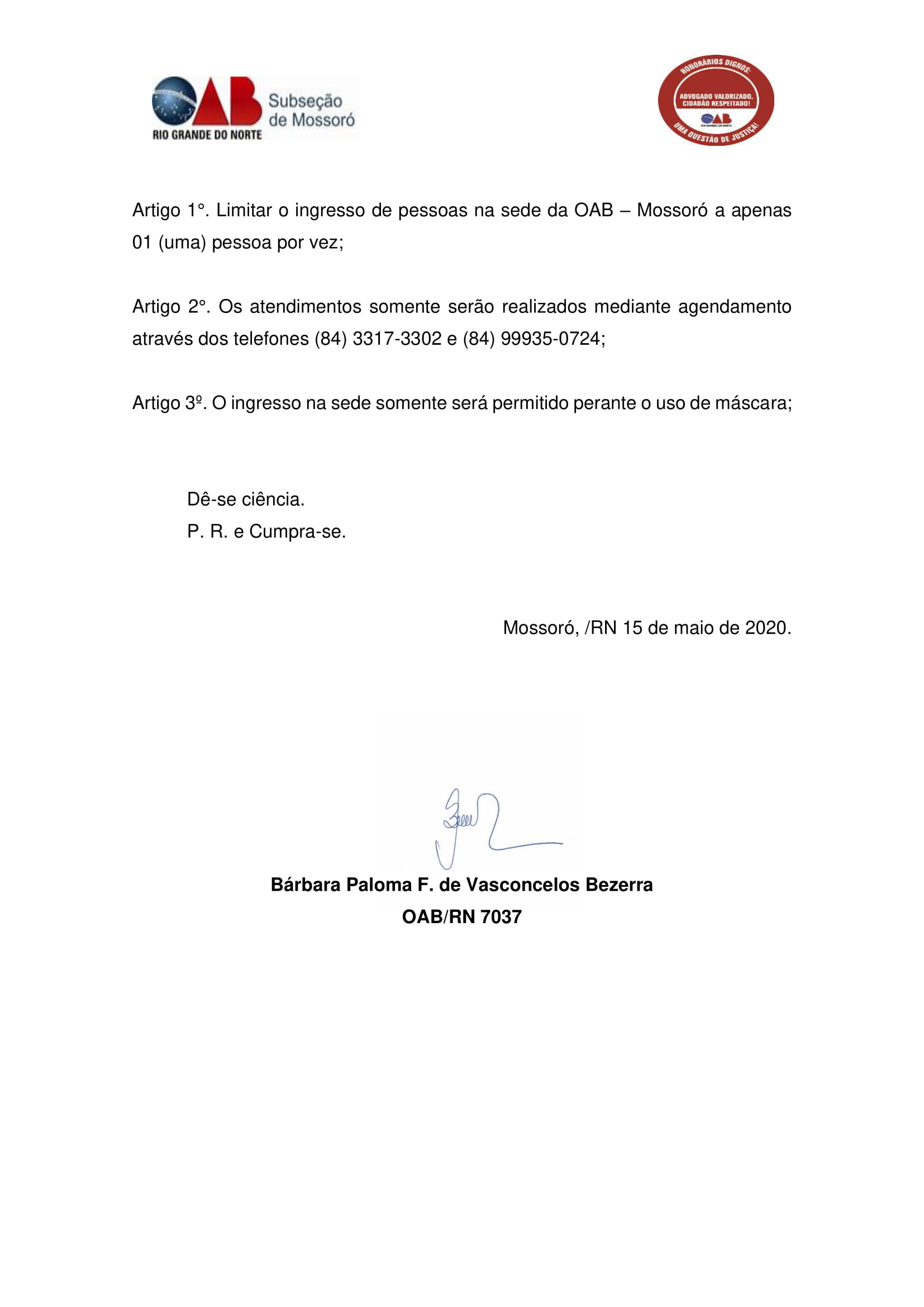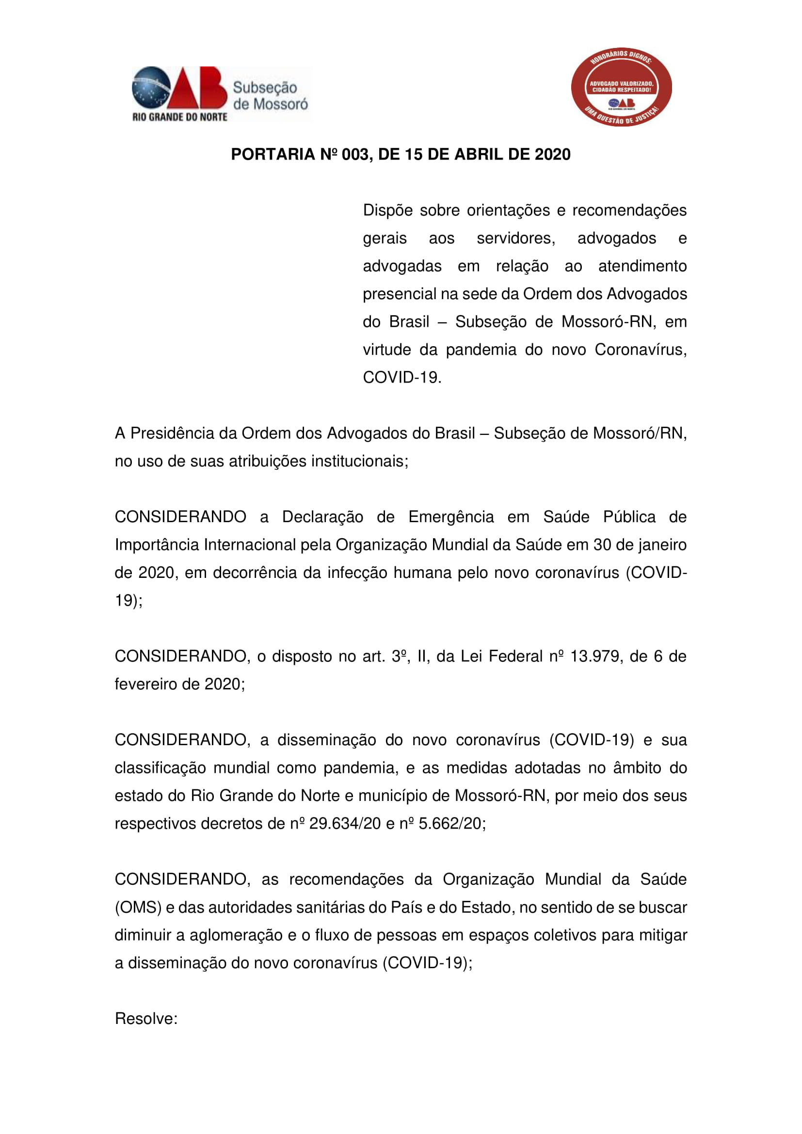PORTARIA Nº 003, DE 15 DE ABRIL/2020