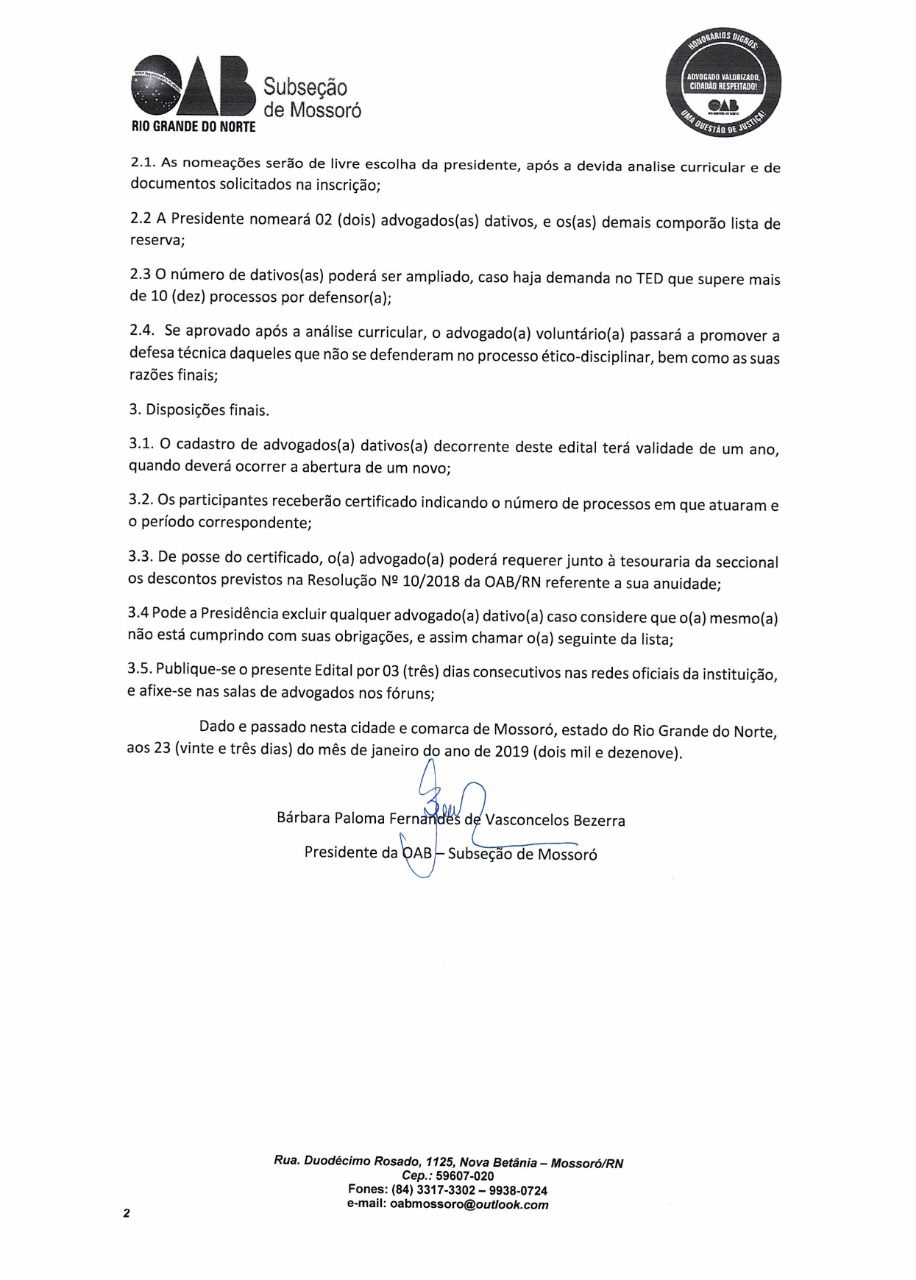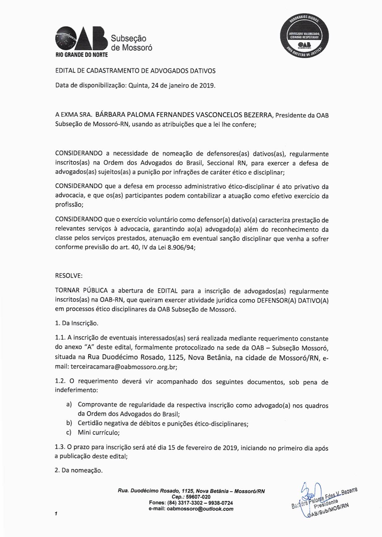 EDITAL DE CADASTRAMENTO DE ADVOGADOS DATIVOS