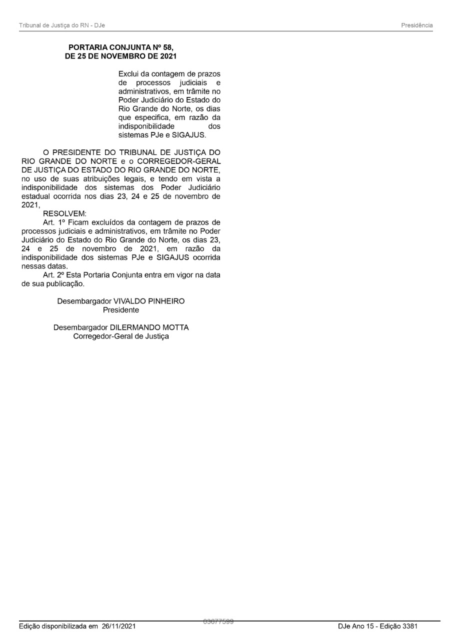 Portaria Conjunta - TJRN e Corregedoria Geral de Justiça