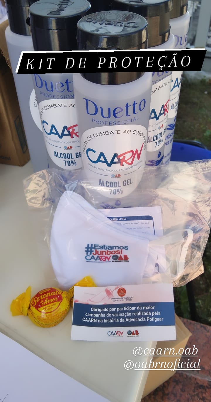 A vacinação foi realizada na sede da OAB Mossoró para advogados, advogadas, ascendentes e descendentes previamente agendados. Cada advogado (a) levou também um kit de proteção individual contendo máscara de tecido e álcool em gel (70%).