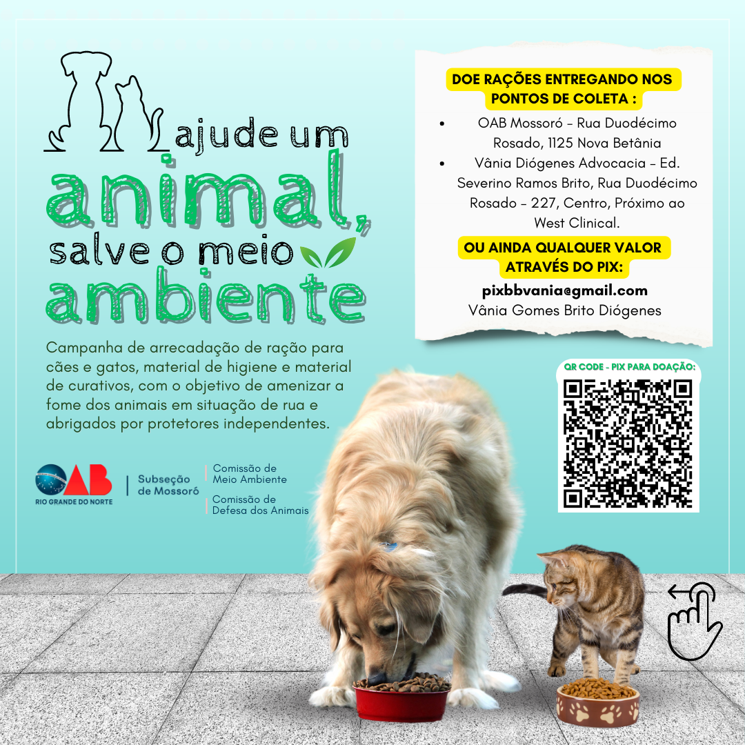 A campanha tem o objetivo de arrecadar ração para cães e gatos, material de limpeza, remédios e material de curativo para ajudar os protetores independentes da causa animal na cidade de Mossoró, que se dedicam em proteger os animais em situação de abandono, contribuindo com os cuidados dos animais acolhidos por eles.