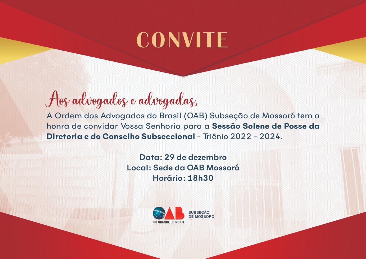 Convite para a Sessão Solene de Posse da Diretoria e do Conselho