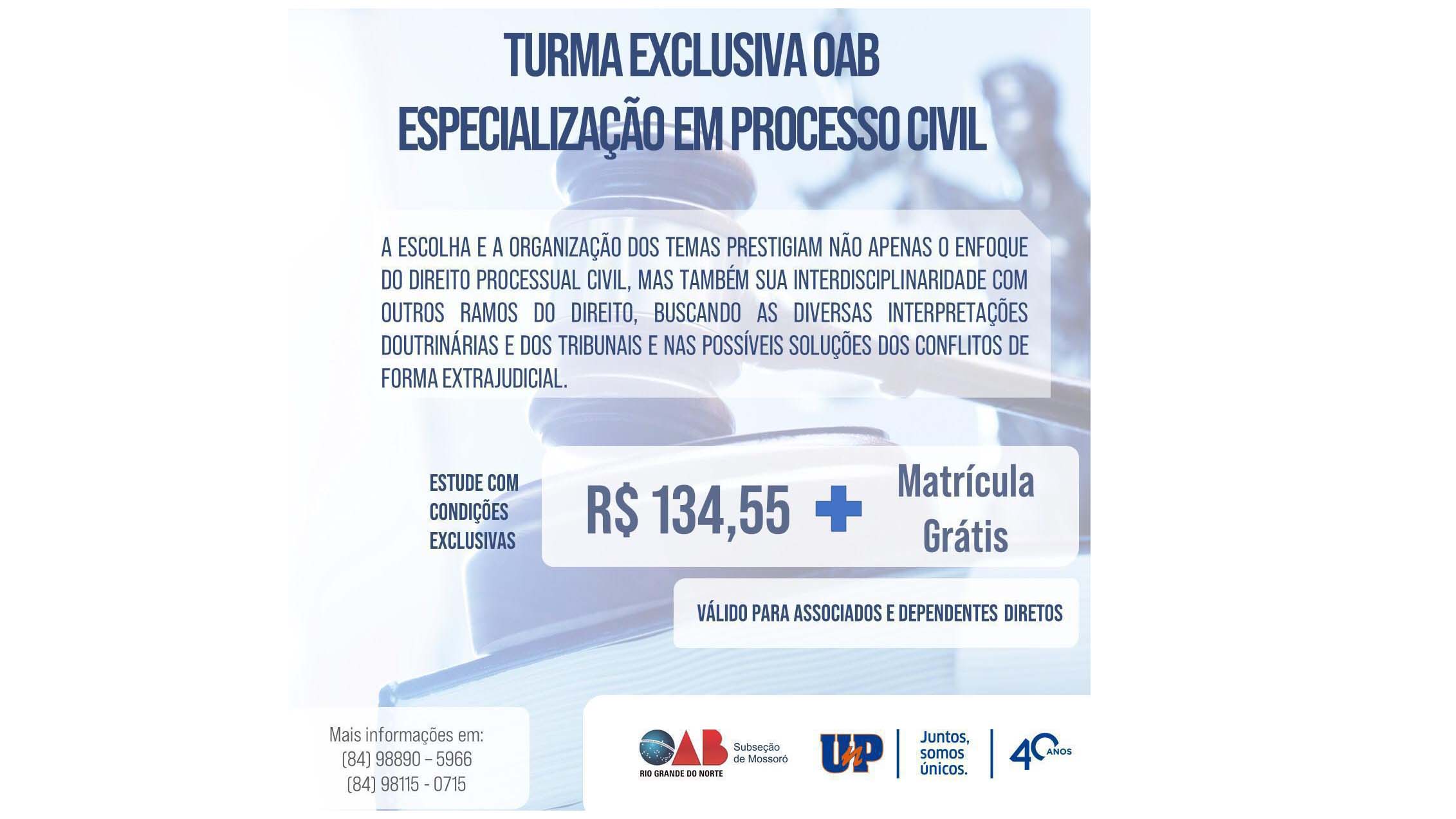 Matrículas abertas para turma exclusiva OAB de Especialização em Processo Civil