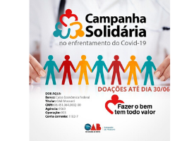 A Campanha Solidária realizada pela OAB Subseção de Mossoró em virtude do Covid-19 termina dia 30/06, e a advocacia poderá realizar a sua doação, de qualquer valor.