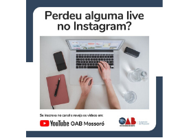 As lives realizadas pela OAB Mossoró no Instagram estão disponíveis no Canal do Youtube. Se inscrevam no canal e ativem o sininho para não perder as transmissões e demais postagens.