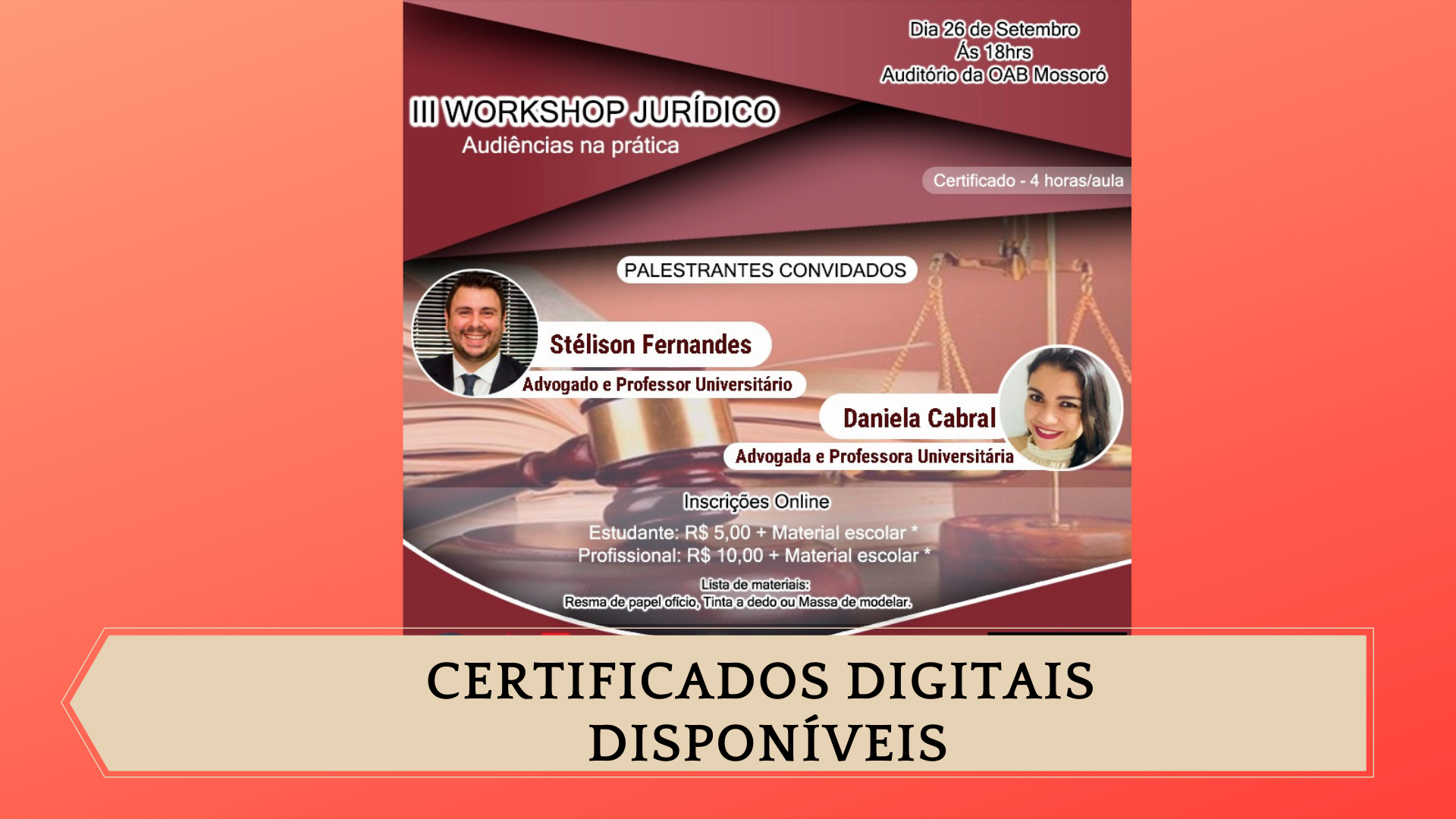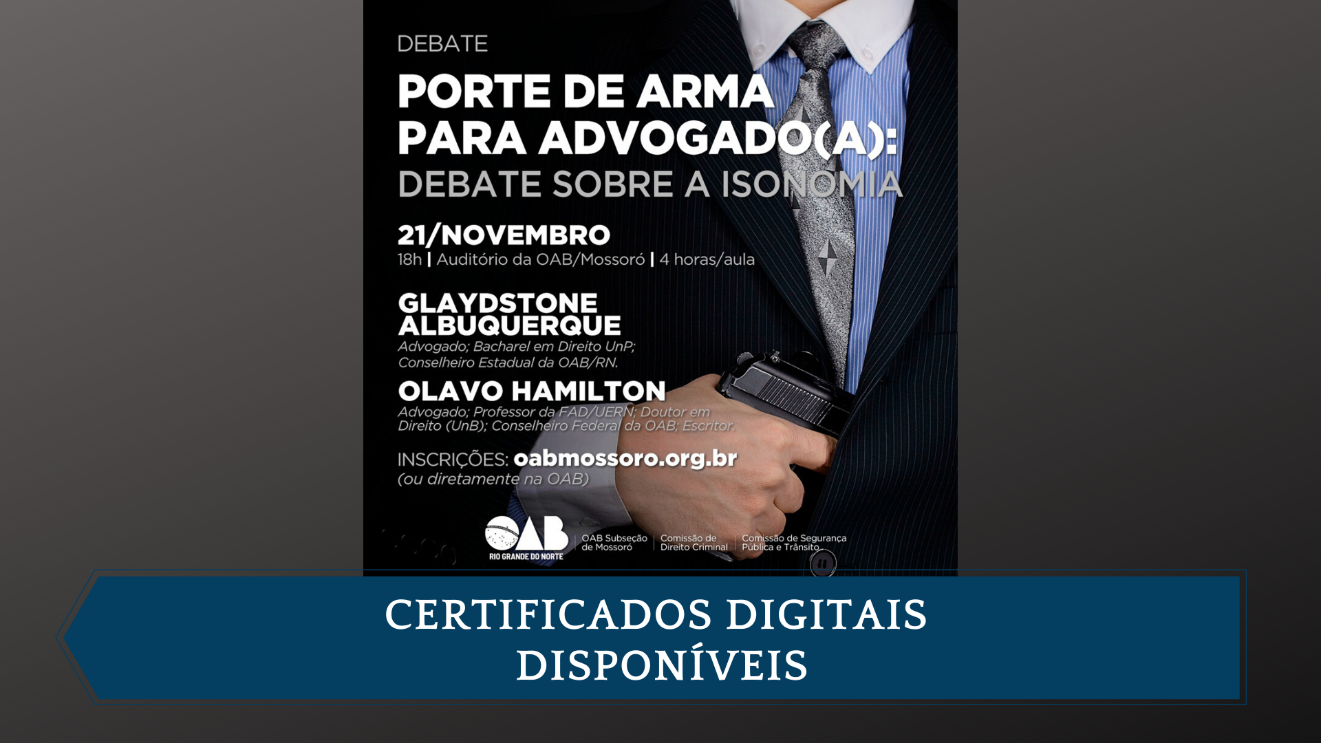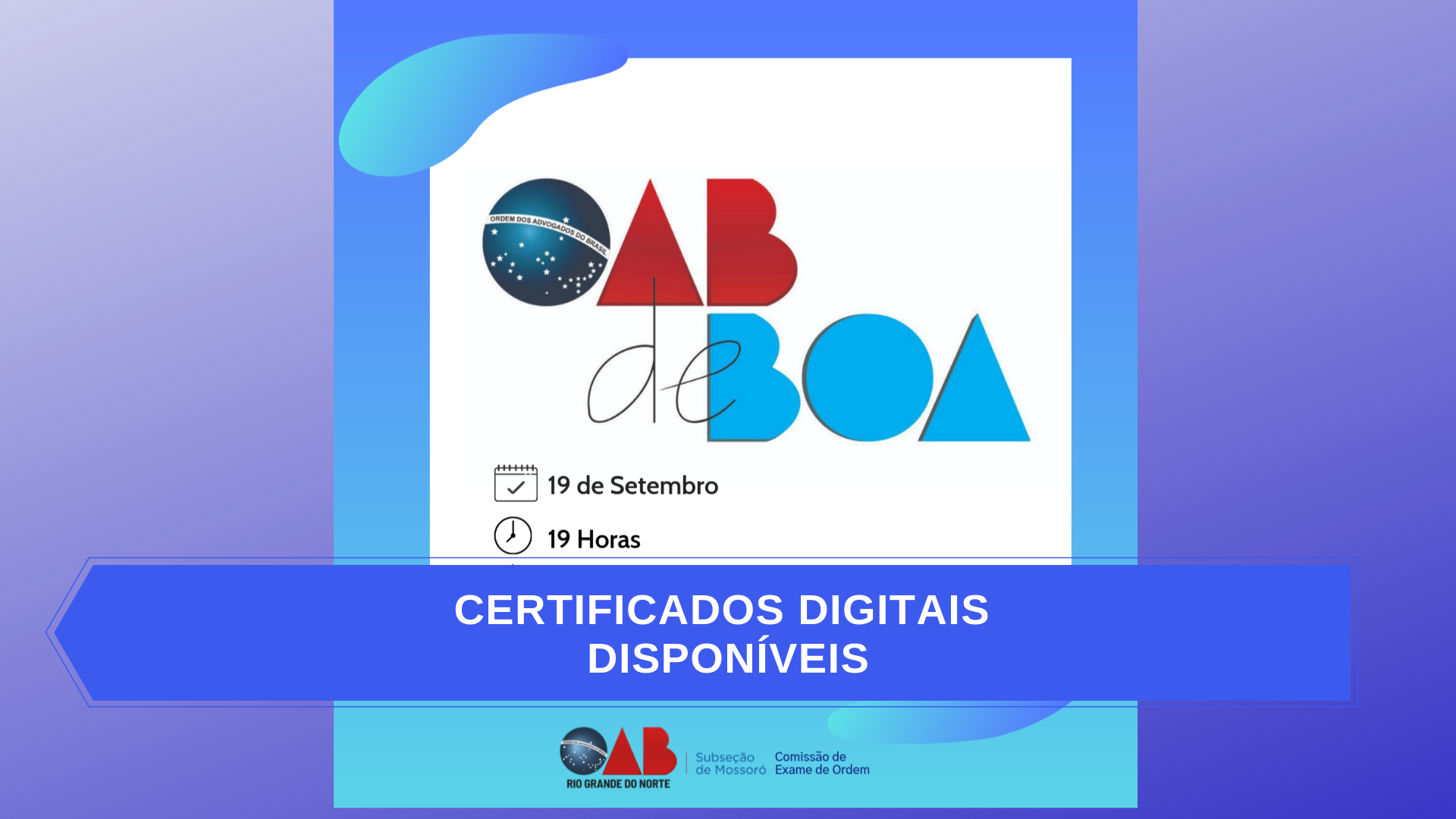 A Comissão de Exame de Ordem da OAB Subseção de Mossoró está disponibilizando os certificados de participantes e palestrantes do evento OAB de Boa