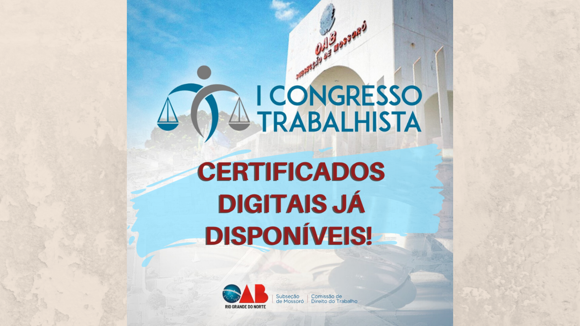 A OAB Subseção de Mossoró através da Comissão de Direito do Trabalho, disponibiliza os certificados digitais do I Congresso Trabalhista.