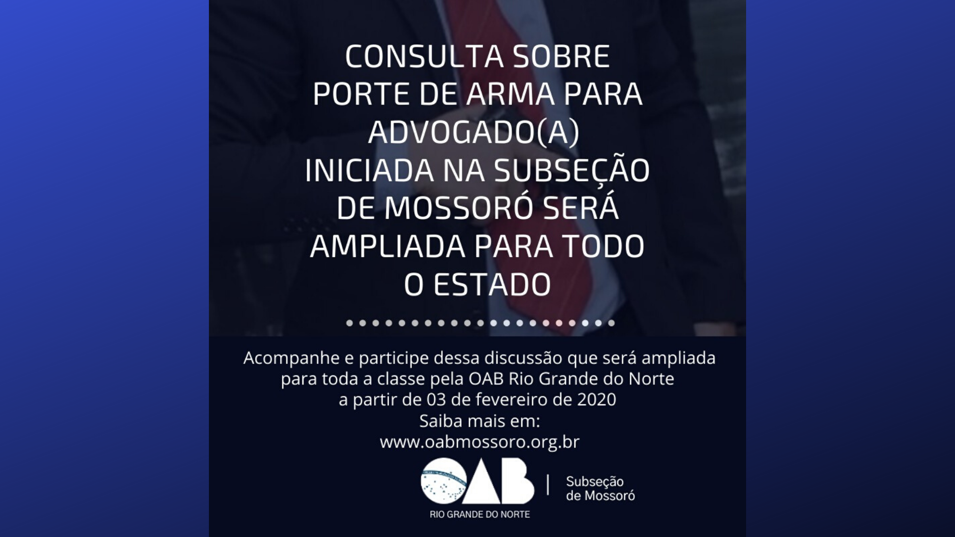Na última sessão realizada na seccional potiguar a OAB Rio Grande do Norte aprovou o relatório com o pedido e decidiu que irá ampliar a consulta para todo o Estado.