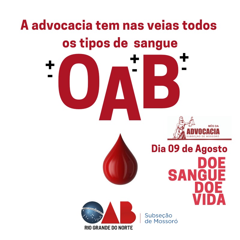 Ao longo de todo este mês de agosto, a OAB Mossoró lembra a advocacia da importância e necessidade desse gesto de solidariedade que poderá salvar vidas.
