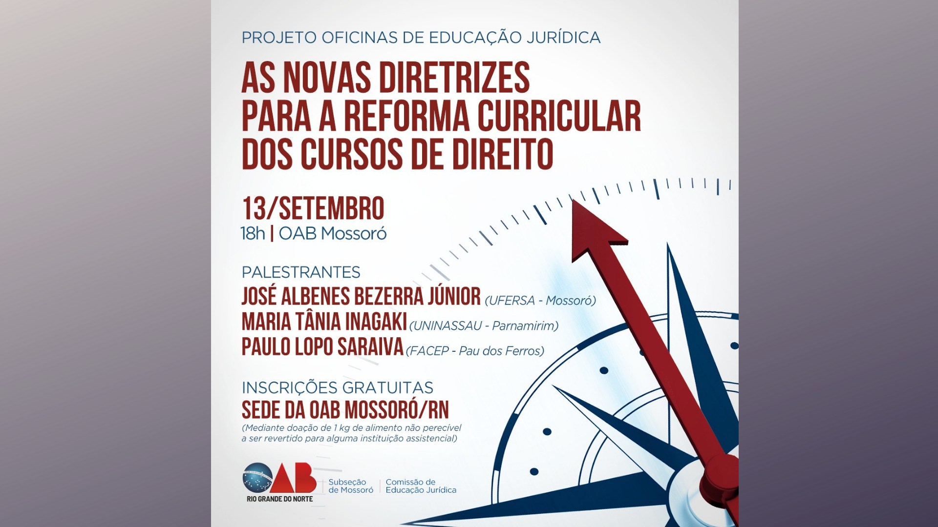 Com o tema ‘As Novas Diretrizes para a Reforma Curricular dos Cursos de Direito’, o evento que ocorrerá em Mossoró é voltado para os coordenadores de cursos, membros de núcleos docentes estruturantes (NDEs), professores, alunos de IES.