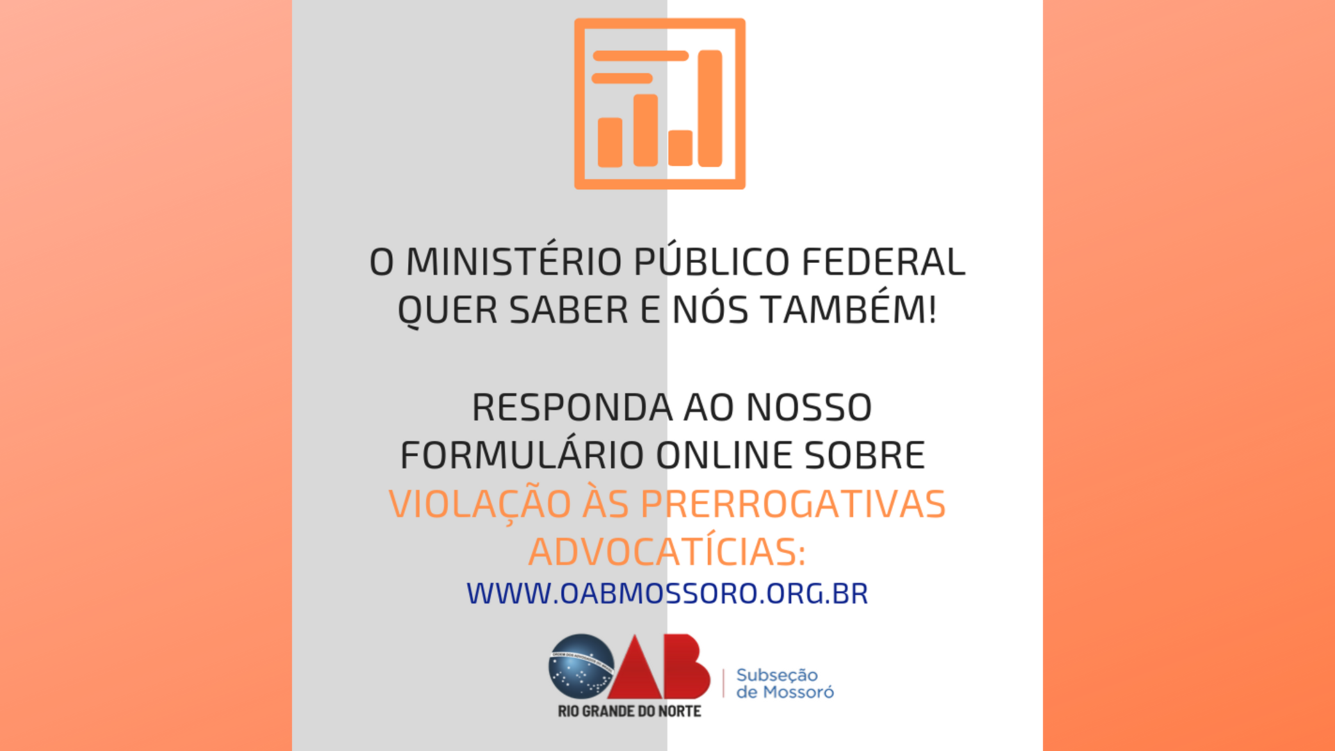 A OAB Subseção de Mossoró divulga formulário com a finalidade de colher dados relacionados as consequências na vida profissional dos (as) advogados (as).