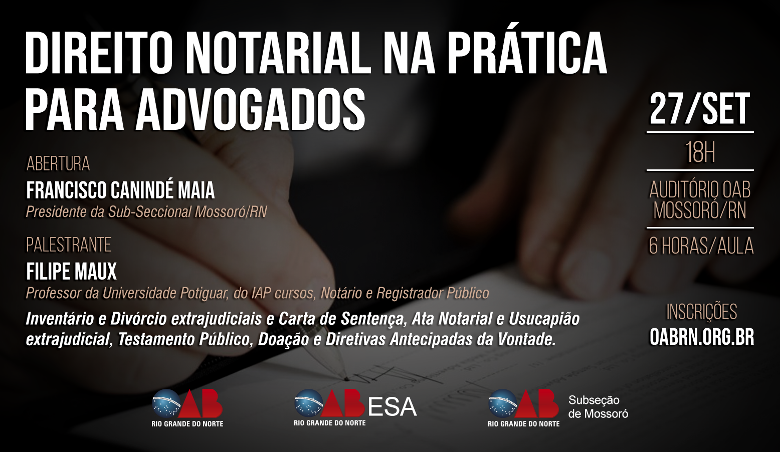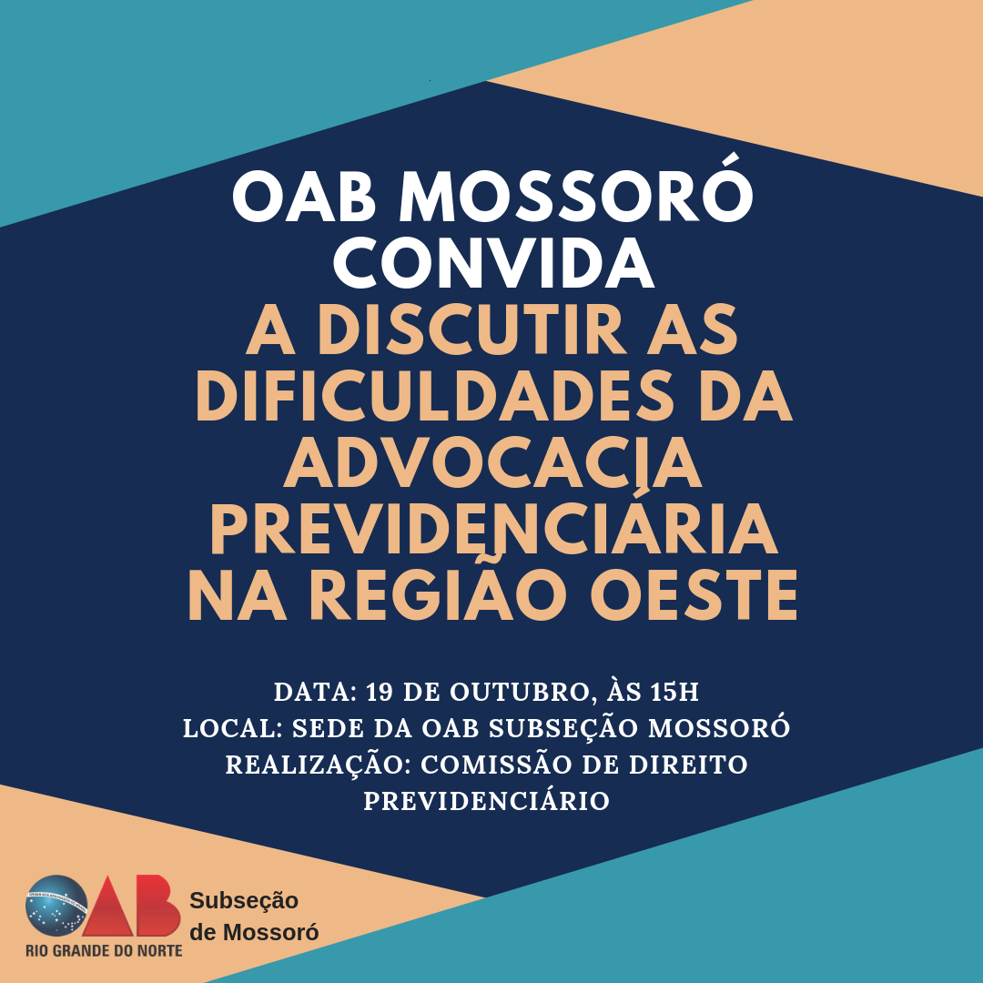 A capacitação será realizada no próximo dia 27 de setembro, a partir das 18h, em Mossoró, no plenário da OAB Mossoró, e no dia 28 de setembro em Caicó, também às 18h, na sede da OAB Caicó.