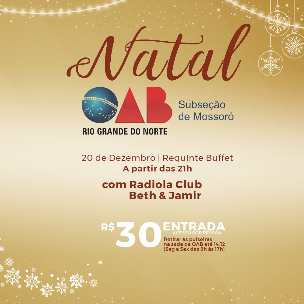 Pulseiras de acesso para a festa de confraternização já estão disponíveis na sede da OAB Mossoró.