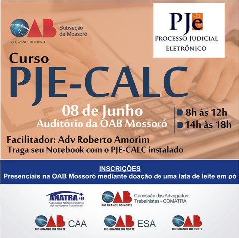 A Ordem dos Advogados do Brasil (OAB) Subseção de Mossoró convida advogados e advogadas a participarem do Curso sobre Processo Judicial Eletrônico PJE-CALC.