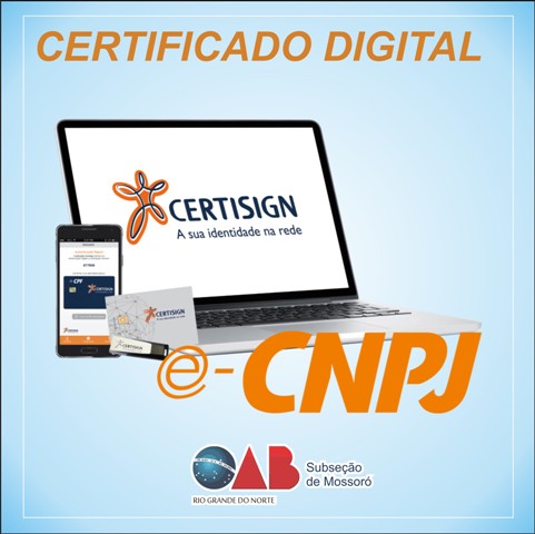 A OAB Subseção de Mossoró já está disponibilizando, em parceria com a Fecomércio no RN, em nossa sede, a certificação digital para sociedade de advogados: o e-CNPJ Certsign.