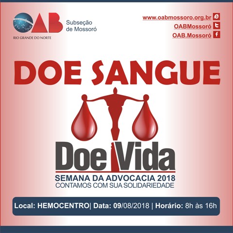 No próximo dia 09 de agosto, faremos o dia 'D' de doação dos membros da OAB Mossoró